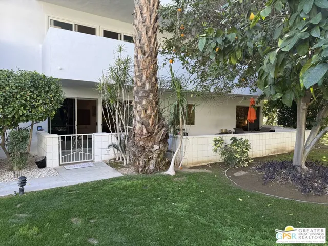 This one-of-a-kind Canyon View Condos unit offers exceptional convenience and style, starting with a ground-floor entry, easy guest parking, and your assigned covered carport just steps from the door. Thoughtfully upgraded and meticulously maintained, this spacious two-bedroom, two-bath home boasts the ONLY extended patio in the entire complex – a rare and coveted feature. Nestled within lush, fruit tree-filled grounds, Canyon View Condos is the sister community to the architecturally significant Canyon View Estates, designed by Wexler & Harrison and built by Roy Fey. Residents enjoy a beautifully maintained pool and spa, creating a serene retreat. A washer/dryer is conveniently located in the entry closet, with a community laundry in each of the four buildings! Additionally, each unit includes a spacious storage room in the covered carport – perfect for athletic gear, seasonal items, and more. Don’t miss this rare opportunity to own a truly special property in an iconic Palm Springs setting!