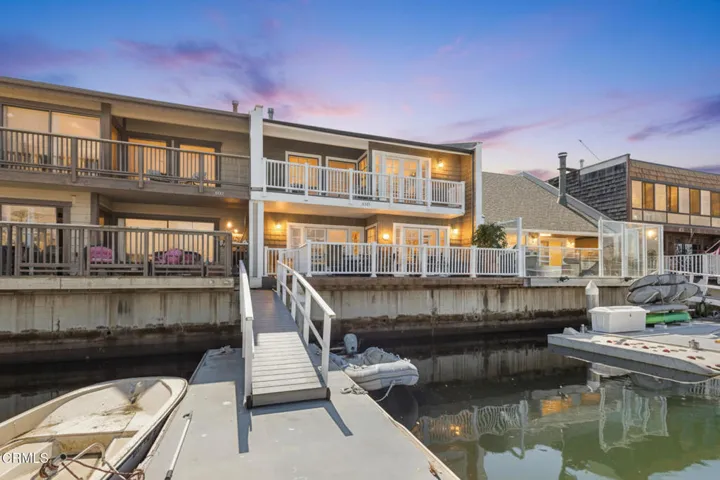 Mandalay Bay 3 bedroom 2 1/2 bath Bonus den/loft Downstairs primary with 40′ boat dock easement. directly behind home. Inviting front patio with secure gate and large north-facing deck out back. Serene colors, wide-plank solid oak hardwood floors downstairs and engineered oak flooring upstairs. French doors. built-ins. Custom built-ins French Country kitchen with butcher block island, stainless steel appliances, including LG refrigerator, KitchenAid dishwasher, Dacor convection oven and gas cook top, wine/beverage cooler. Home is in move-in condition. Located 1/2 way between LA and Santa Barbara in the Channel Islands harbor where you can boat to restaurants, yacht clubs and out to the islands.