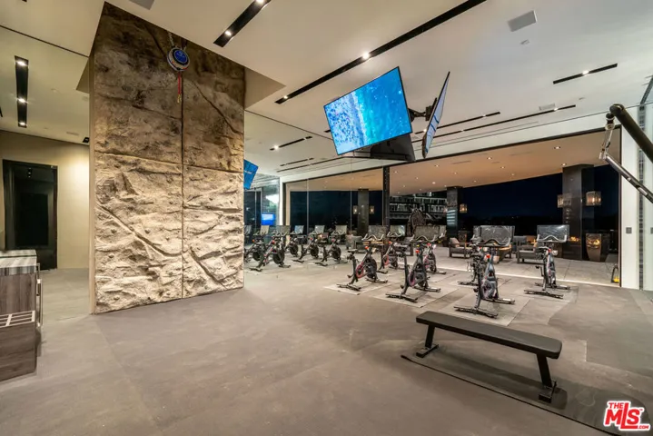 Seller accepts crypto! Experience the pinnacle of lavish splendor and quiet comfort at La Fin, or The End, aptly named as the ultimate, final example of modern decadence and refinement; the be-all and end-all experience in one of the world’s most famous and exclusive enclaves. Sited on a two-acre parcel, this magnificent residence offers 12 spacious bedrooms, 17 bathrooms, remarkable amenities, and brilliant panoramic views of Los Angeles. Just beyond the gated motor court, proceed down to the oversized glass entryway to one of the most beautiful and opulent homes the globe over. A spiral staircase surrounds a stunning 44-foot chandelier made of 55,000 crystals, a showstopping centerpiece yet just one of the impressive custom lighting sculptures throughout the home. The main level features a custom stone bar that flows into the formal living area with a massive hand-carved stone latticework fireplace. All furniture was custom-made for La Fin by Italian luxury brand La Contessina. Motorized Fleetwood pocket doors open to the infinity-edge pool with a striking 23-foot LED screen that rises at the touch of a button and a 30-person lounge area with fire pit. The lower level provides a 6,000-square-foot entertainment area with lofty 18-foot ceilings, custom bar, commercial-grade catering facilities, 1,000-bottle wine cellar, cigar lounge, ice-cold vodka tasting room, and a jaw-dropping automated six-car vehicle elevator display. Additional amenities on the lower level include an outdoor lounge area, luxury fitness center with rock climbing wall, spa, steam room with backlit onyx, massage room, and sound-proof cinema. The second level features a grand primary suite with Italian hand-crafted floor-to-ceiling oak cladding, lounge area, coffee bar, spa-like bathroom with Calacatta Gold marble, massive 100-square-foot shower, solid marble vanity, dual showroom-style walk-in closets, and private wraparound balcony with sweeping views, spa, fire pit, and TV. The rooftop deck offers additional outdoor/entertainment space with built-in seating, fire table, video screen, elevated spa, and even more incredible vistas. Staff residences and a detached guest suite offer ample space. Fingerprint technology and security command center provide the utmost privacy and safety. The meticulously designed and curated La Fin is a once-in-a-lifetime Bel Air estate that can only be admired but never replicated.