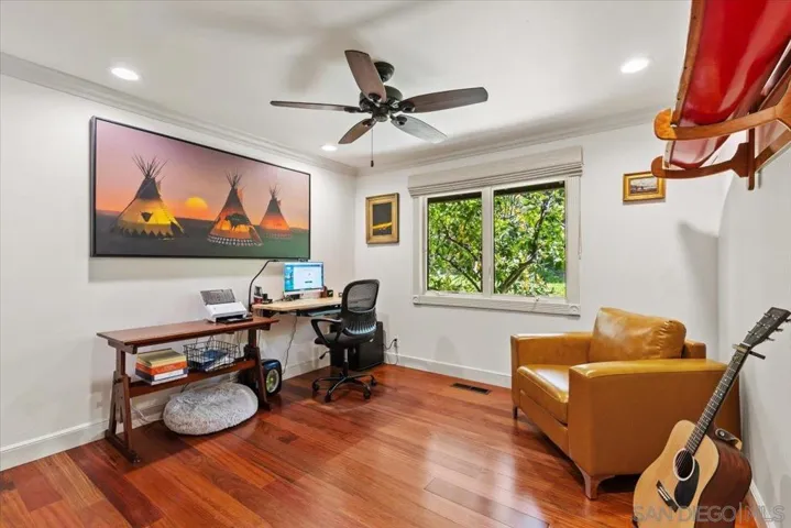 Experience the ultimate in coastal luxury with this exceptional home, ideally located in the prestigious Olde Del Mar neighborhood. Capturing stunning panoramic views and the refreshing Pacific breezes, this expansive residence boasts vaulted, beamed ceilings and an abundance of natural light, creating an inviting and airy atmosphere throughout. Designed for seamless indoor-outdoor living, the home features expansive view decks, private patios, gardens and more, perfect for entertaining or relaxing in tranquility. Experience the ultimate in coastal luxury with this exceptional home, ideally located in the prestigious Olde Del Mar neighborhood. Capturing stunning panoramic views and the refreshing Pacific breezes, this expansive residence boasts vaulted, beamed ceilings and an abundance of natural light, creating an inviting and airy atmosphere throughout. Designed for seamless indoor-outdoor living, the home features expansive view decks, private patios, gardens and more, perfect for entertaining or relaxing in tranquility. The fifth bedroom, complete with a full bath, is situated on the lower level, offering versatility as a private guest suite or current use as a fitness area, enhanced by a portable steam room (which may convey). Property is equipped with Solar Electric & Soft Water Systems. With an enviable walkable location, this residence provides effortless access to the village’s world-class dining, shopping, and the beach. This is coastal living at its finest, where luxury, convenience, and beauty come together in perfect harmony.