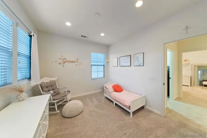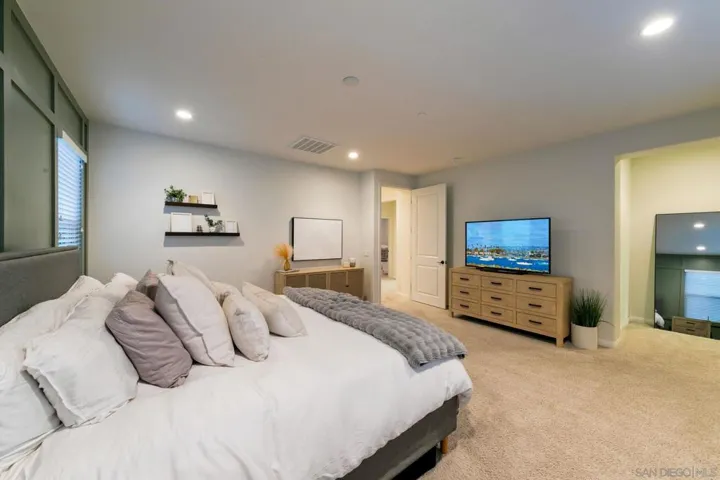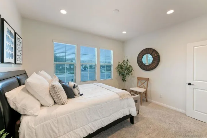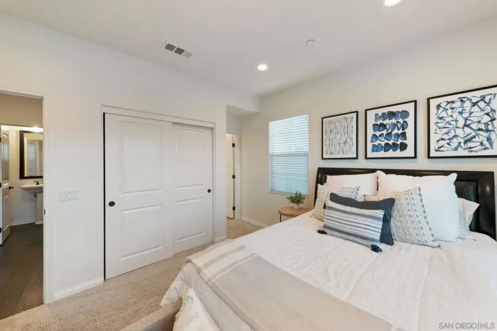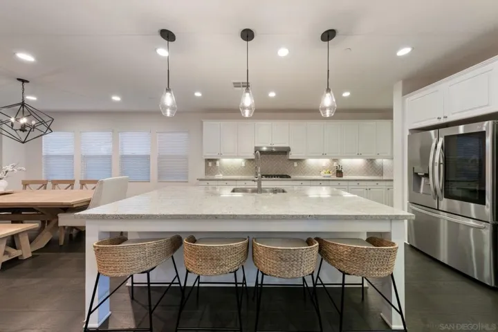 Your new home in the sought after community of Harmony Grove Village awaits you! This lovely home features many designer touches, OWNED solar, an ample 3027 sq. ft. with 4 bedrooms, 4 1/2 baths, bonus room (could easily be converted to a 5th bedroom) a separate office with French doors for privacy and a 3 car garage. The spacious great room features a cozy electric fireplace, dry bar with beverage fridge and spacious kitchen with a huge island! The kitchen flows seamlessly into the CA Room and patio with several areas for entertaining guests or just staying home and relaxing. This floorplan is perfect for hosting both large gatherings or intimate dinner parties. Harmony Grove Village has it all! Residents enjoy the resort like pool complex, miles of walking/biking/horse trails, 4th of July Park & numerous pocket parks.