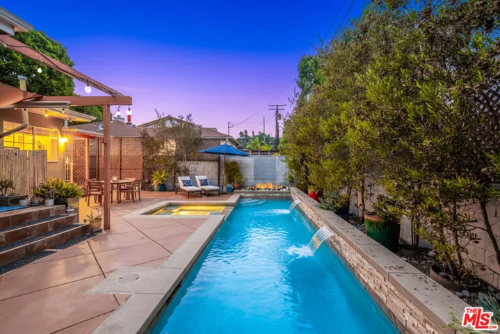 Welcome to 10860 Stever Street! This lovely 3+2 home is located on a peaceful tree-lined street in the highly desirable Blanco Park area of Culver City along with its award-winning school district. Features of this light-filled home include; wood flooring throughout, dining area that opens to the galley kitchen which includes breakfast bar, Caesar stone counters, stainless steel appliances and separate laundry room. The romantic primary bedroom boasts a gas fireplace, lounge/desk area, en-suite bath and sliding door which opens up to a private patio overlooking the beautiful oasis backyard. The garage was converted to a sound reducing rec room/exercise studio, potential ADU with a separate entrance. Two large guest bedrooms and full bath completes the interior of the house. The exterior of the home is magnificent! Drought tolerant landscaping, an absolutely gorgeous entertaining backyard includes a salt water lap pool with two wall fountains, spa, a fire pit at one end of the pool, cafe lights, another fire pit for sitting around roasting marshmallows and enjoying warm Southern California nights. Additional features include fully owned solar panels, mostly copper plumbing, brand new roof, newer HVAC system, newer rain gutters. Property is located within close proximity to Blanco Park, Veterans Park, El Rincon Elementary, Culver Middle and Culver High School, Downtown Culver City, Culver Steps, One Culver and Ivy Station, which provides endless options for dining and retail. Also located within proximity to Sony Studios, Amazon, Apple and Google. If you are looking to take part in outdoor activities, this gem is located within short distance to the Culver City Scenic Overlook (great location for scenic hiking), Kenneth Hahn State Recreational Area and a bike path that takes you all the way to the Pacific Ocean roughly 7 miles away. Culver City is equidistant to many vital neighboring cities; also near important sites including Marina Del Rey, Playa Del Rey, Dockweiler Beach, Santa Monica, El Segundo, Downtown Los Angeles, Century City, LAX, UCLA, USC, L.A Live, Sofi Stadium, LA Forum, (and much more). The Expo light rail line is also a convenient option to get around L.A that is located within 10 minutes from this property.