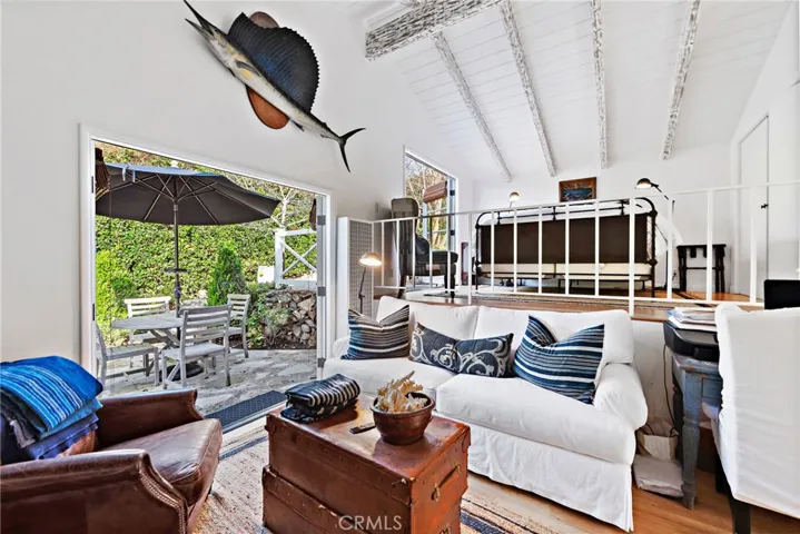 Located on a private street in South Laguna just a short stroll from the sand, this fully furnished and beautifully updated unit offers the perfect coastal retreat. The interior features open-beamed ceilings, laminate flooring, and a stylish kitchen with a gas stove that flows seamlessly into the living room. A full bathroom with bathtub adds convenience, while the loft bedroom overlooks the living space and includes a plush king-sized bed and generous closet storage. Outside, a private patio invites alfresco dining with serene ocean views, complemented by apple and lemon trees. Additional highlights include shared laundry facilities and one dedicated parking space directly in front of the home.