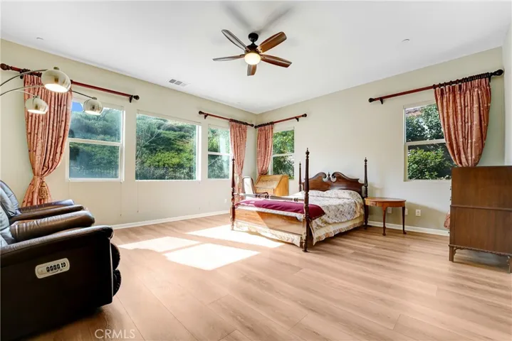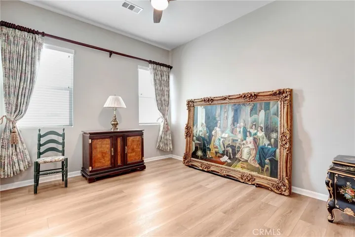 Great single level house located in the exclusive gate community of ALIENTO. 3 bedrooms with option for a 4th bedroom, 2.5 baths, high ceilings, leased solar panels (about $90 monthly). The 2 front bedrooms share a jack & jill bathroom with a walk-in shower. The open floor plan connects the living/dining/kitchen areas. The backyard has pavers and lots of fruit trees like apricot/apple/plum/peach/nectarine/tangerine/jujube/grape vine. Community Amenities: clubhouse, gym, lap and kids’ pools, spa, dog park, bocce ball court, private parks, and hiking trails. Less than 2 miles from the 14 freeway with NO noise, and 5 miles from the 5 freeway access. Conveniently located minutes from Trader Joe’s, Costco, Target, top schools, dining, and more. Don’t miss a chance to live in this gated community.