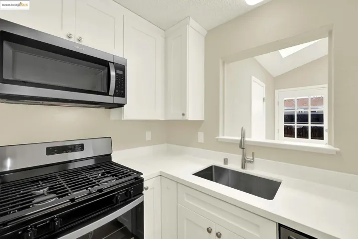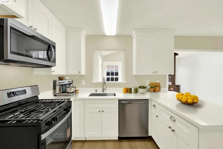 Just Finished Updating, Move-In Condition! This may be the only unit with a Family Room with free-standing stove Off the Kitchen and Dining Room. Kitchen features Quartz Counters, new Cabinets, Gas Stove, Microwave and Breakfast Bar. Conveniently located in the kitchen is a laundry closet for washer/dryer and an 1/2 bathroom. The upstairs consists of an updated bathroom and 2 bedrooms. One Bedroom is larger with 2 closets. There is carport parking behind the unit. Conveniently located off Highway 80, Shopping centers, The bay and more.