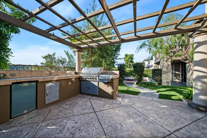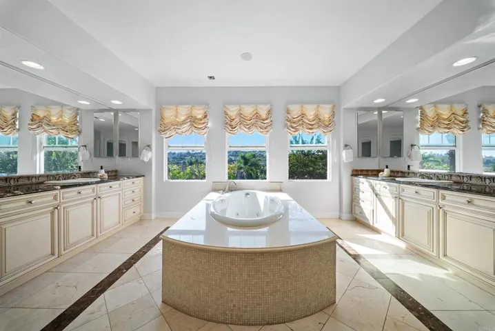 Welcome to this rare luxury estate in the prestigious La Costa Greens, Carlsbad — now professionally reimagined and newly restyled. Nearly 5,000 sqft of refined living space is nestled on a quiet cul-de-sac with panoramic views of the world-famous La Costa Golf Course, offering the ultimate in privacy, scale, and elegance. 6 bedrooms, 4.5 bathrooms, 4,913 sqft interior, 10,358 sqft lot Private downstairs suite ideal for guests or multigenerational living. Expansive chef’s kitchen with oversized island, custom cabinetry, marble finishes, and professional matching appliances. Grand primary suite featuring a dedicated study, marble-clad bath and vanity, a luxurious oversized spa tub, a generously sized walkthrough closet, and a walk-in shower. Elegant interiors with marble and rich wood flooring throughout. Built-in premium surround sound system throughout both levels — with a state-of-the-art setup in the living room that delivers a true home theater experience. Spacious built-in office on the main floor, featuring custom cabinetry and a hidden fold-out Murphy bed — perfect for guest accommodation or a private workspace. Signature, professionally designed water features in both the front and rear yards — luxurious fountains that provide a resort-quality ambiance and reflect a significant custom investment. Resort-inspired backyard featuring an outdoor fireplace and an outdoor kitchen with a brand-new built-in BBQ grill and refrigerator — never used and custom-installed exclusively for this home — surrounded by lush landscaping. 2 separate 2 car garages giving you plenty of parking + oversized motor court with parking for 4+ cars. No front or rear neighbors — open views and unmatched privacy. Community highlights: enjoy the perks of La Costa Greens’ private clubhouse, pool, gym, parks, and trails. Plus, the home is within walking distance to Alga Norte Community Park — Carlsbad’s largest and most complete park with aquatic center, sports fields, dog park, and community events. From serene mornings on the balcony with refreshing ocean breezes to vibrant evenings entertaining in your expansive outdoor oasis — this home is designed for luxury living at every turn. Last year, the identical floorplan in this community sold for $3.95M. Now offered at $2,899,000, presenting an extraordinary opportunity in today’s market. REMARKABLE, RARE OPPORTUNITY TO LEASE OR BUY! Property offered fully furnished, partially furnished, or unfurnished.
