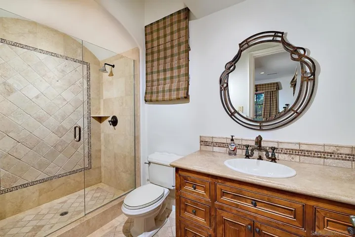 An Iconic French Country Estate in The Heritage Set within the gate-guarded, exclusive community of The Heritage, this Greg Agee French Country masterpiece claims a premier position on over an acre along the second hole of the world-class Maderas Golf Club. Spanning more than 7,800 square feet, this estate blends timeless architectural integrity with resort-inspired living, all framed by immersive panoramic views. A dramatic entry crowned with a dazzling chandelier welcomes you into interiors of refined sophistication—soaring ceilings, freshly refinished hardwood floors, custom millwork, and wainscoting throughout. The great room commands attention with its grand masonry fireplace, vaulted wood-beamed ceilings, and seamless flow into the heart of the home. The gourmet kitchen is a chef’s statement, boasting dual Sub-Zeros, a Viking 6-burner range with flat grill, dual Bosch dishwashers, custom alder cabinetry, and a sunlit dining area with golf course views. Formal and casual spaces—from the elegant dining room to the inviting bar—set the stage for effortless entertaining. Designed to live primarily as a single level, the residence offers a serene ground-floor primary suite with dual walk-in closets, dual water closets, and spa-inspired vanities. A handsome office, an additional ensuite bedroom on the main level, with three upper ensuite retreats ensure comfort for all. A detached one-bedroom casita adds privacy and resort style living for extended guests. Outdoors, the home transforms into a private resort: a vanishing-edge pool spilling toward the fairways. Set on a highly desirable street within the Heritage. Outdoors, the home transforms into a private resort: a vanishing-edge pool spilling toward the fairways, a dramatic waterfall spa, and a fully equipped outdoor kitchen and dining pavilion—all capturing the breathtaking backdrop of Maderas’ rolling fairways. A detailed authentic custom slate roof, motor court with 4 car garage. This estate is more than a residence; it is a legacy of artistry, elegance, and exclusivity—standing proudly among the most distinguished properties within The Heritage.