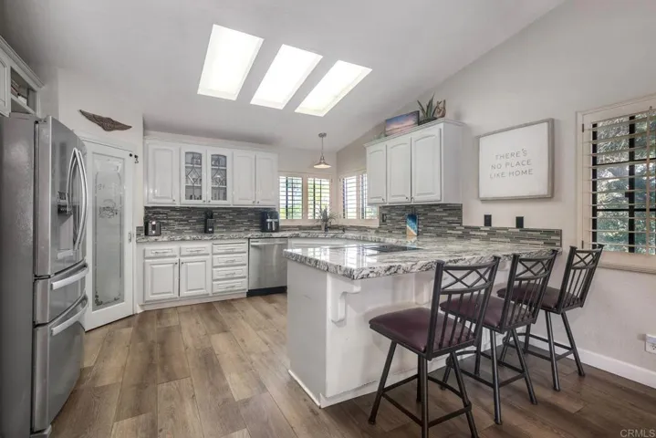 Nestled behind private gates on a sprawling 1-acre lot, this Fallbrook home offers the perfect blend of comfort, style, and functionality. All three main bedrooms and two full bathrooms are on the main floor, creating true single story living with vaulted ceilings, skylights, and an open, natural light floor plan. The modern kitchen features granite countertops, stainless steel appliances, and a lighted walk-in pantry, flowing seamlessly into the family and living areas. Beneath the home, a fully finished guest suite provides over 400 sq/ft of additional living space, complete with a kitchenette, bonus room, full bathroom, and private access; ideal for guests. Outside, enjoy mature fruit trees, terraced landscaping, views from multiple patios, including the outdoor spa. A stacked stone fireplace, abundant storage, and thoughtfully designed indoor-outdoor flow complete this exceptional home. Experience privacy, versatility, and the beauty of Fallbrook living.