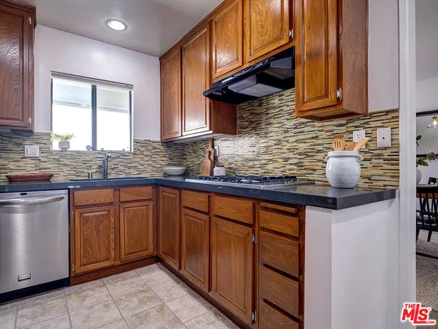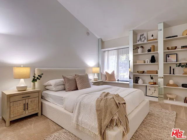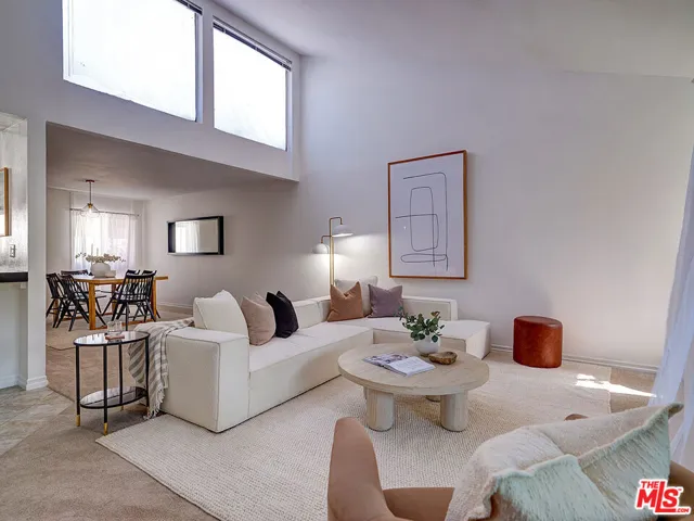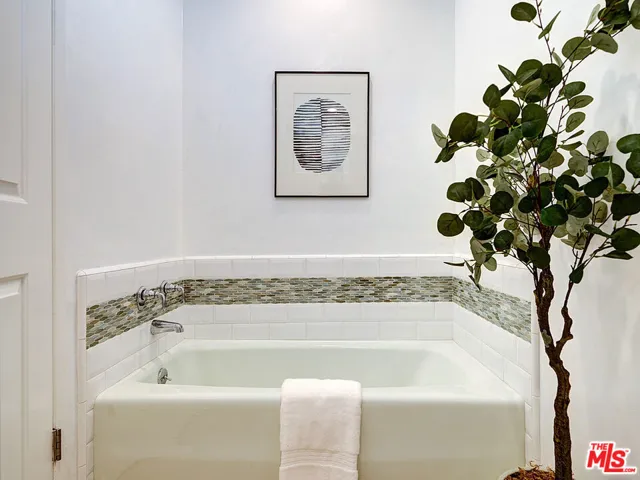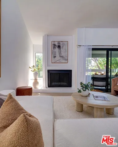 Welcome to sophisticated penthouse living in prime Westwood/Century City, where dramatic vaulted ceilings and expansive windows create a sun-drenched sanctuary with serene treetop views from your private balcony. This tastefully updated residence features a well-appointed kitchen with stainless steel appliances including rich oak cabinetry, sleek Caesarstone quartz countertops, and mosaic tile backsplash, plus a convenient laundry alcove with full-size front-loading washer and dryer. The open living and dining areas flow seamlessly around a cozy fireplace, perfect for both relaxed evenings and lively entertaining. The guest suite offers custom built-in shelving and large closets, with an adjacent updated bathroom featuring classic subway tile and modern fixtures. Your primary retreat boasts soaring ceilings, abundant natural light, an expansive walk-in closet, and a spa-like bathroom complete with dual-sink vanity, designer-tiled shower, and a separate soaking tub. Building amenities include a sparkling pool, spa, and top-floor sun deck. HOA dues include earthquake insurance, basic cable and broadband internet. Unit includes two tandem subterranean parking spaces and additional storage. With proximity to UCLA and Century City dining and shopping, easy freeway access, and zoning for highly-rated Westwood Charter Elementary, this turnkey home is the perfect blend of style, comfort, and luxury in one of LA’s most desirable neighborhoods.