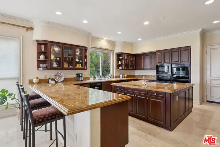 Located in the exclusive, 24 hour guard-gated community of Mulholland Park, this magnificent, double lot, 6-bedroom, 8-bath estate offers unparalleled luxury and privacy on an exceptional double flag lot spanning over 2.67-acres w/ expansive views! Highly desirable Plan 6 model. 100 ft Setback private driveway, oversized, & dual entry two car garages. Hand carved crown mouldings, attention to detail wainscotting, and so much more. Situated on a quiet cul-de-sac street, This expansive residence spans over 6000 square feet and features breathtaking panoramic vistas of the San Fernando Valley and The Mulholland Country Club. Key features are Floor-to-ceiling windows and multiple balconies capture panoramic views of the verdant golf course and the valley below. All creating a stunning backdrop for both daily living and special occasions. Grand-scale entertaining: The dual startcase formal entry opens to a dramatic great room with soaring ceilings, a formal dining area, and a spacious, modern kitchen with granite countertops and high-end appliances. All custom made dual wrought iron winding spiral staircase leads to all upper bedrooms, luxurious master retreat, complete with a cozy fireplace, his-and-hers private water closets, expansive walk-in closets, and private balconies overlooking the pool and valley. Generous living spaces: In addition to the primary suite, the home includes four large bedroom suites, all en-suite full baths with their own private balconies, a guest/maids’ quarters, a private office, and a state-of-the-art movie theater. Park-like grounds: The home is set on a massive all usable lot providing a serene and private outdoor oasis. The grounds feature a pool, spa, entertaining areas, room for a sports court area, and an expansive lawn perfect for relaxing and enjoying the scenery. This property is a very unique and special “hand picked” lot, all oversized for large parties and entertaining with elegance and privacy. Enjoy this offering as a truly magnificent living experience in one of Tarzana’s most prestigious communities. A must see of a lot and prime location!