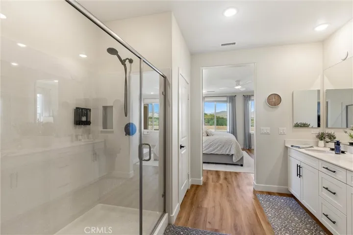 Step inside to find a beautifully upgraded interior featuring custom wainscoting, designer light fixtures, premium faucets, stylish backsplash, and upgraded flooring throughout. These carefully selected finishes elevate the home beyond builder-standard, creating a sophisticated ambiance that’s move-in ready. The stunning 15-foot sliding glass door seamlessly connects indoor and outdoor living, flooding the home with natural light while framing those spectacular mountain views.