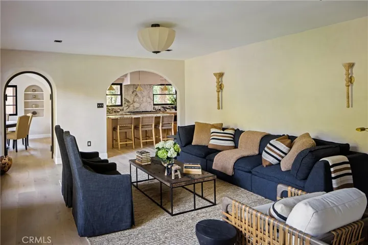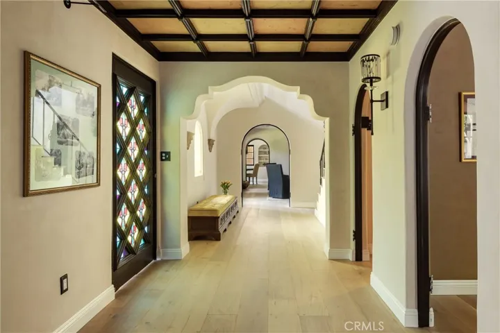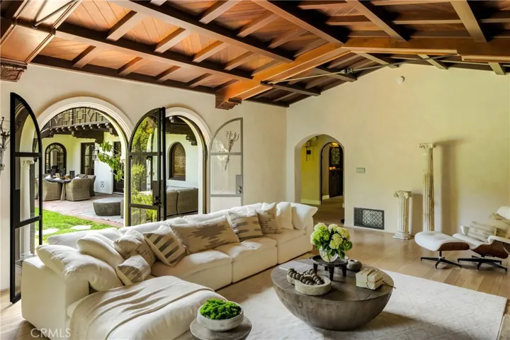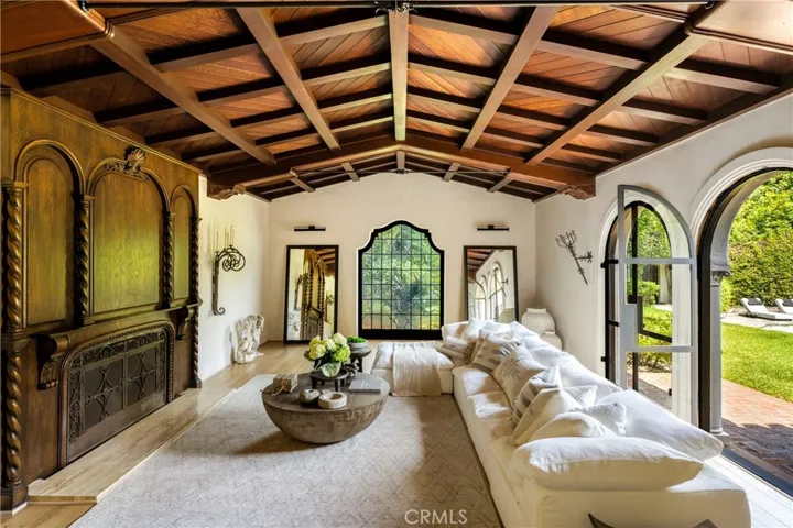 Welcome to a once-in-a-generation opportunity to own one of Hollywood’s most iconic estates. Nestled in coveted Outpost Estates, this 1929 Spanish Colonial Revival masterpiece was the longtime residence of legendary host Bob Barker. Restored and reimagined by acclaimed designer Julia Dempster, it embodies the romance of Old Hollywood with the sophistication of contemporary luxury. Built atop the site of “The Outpost,” the adobe home that marked Hollywood’s birth, this landmark is Los Angeles Historic-Cultural Monument No. 673. With a provenance as rich as its design, 1851 Outpost Drive is more than a home; it is a chapter of Los Angeles history. The estate features six spacious bedrooms, six baths, and a powder room. A 601 sqft basement includes a sauna and two additional rooms ideal for guests, office, or gym. A stylish home office with en-suite bath doubles as a guest suite or studio. Original details have been preserved, from the fresco ceiling and arched doorways to stained-glass windows and the iconic bar in the wood-paneled library. The dramatic fireplace and sweeping interiors evoke Hollywood grandeur. Dempster’s restoration brings natural textures and warmth, with Roman clay and limewash finishes enhancing the light. The chef’s kitchen is a masterclass in form and function, with custom oak cabinetry, Thermador appliances, and breathtaking Viola Monet marble. The home offers two primary suites: the main with dream walk-in closet and his-and-hers baths, and a second with dual closets for guests or family. Bathrooms showcase book-matched travertine showers and marble thresholds. European oak floors run seamlessly, while hand-selected Zia tiles add character to the secondary baths. An infrared sauna offers a serene wellness retreat. Outside, the grounds feel like a private resort: pool, expansive lawn, and a towering oak tree create a sanctuary just moments from Runyon Canyon, the Sunset Strip, and the pulse of Hollywood. With its location, history, and world-class design, 1851 Outpost Drive is not simply a residence; it is a legacy awaiting its next custodian.