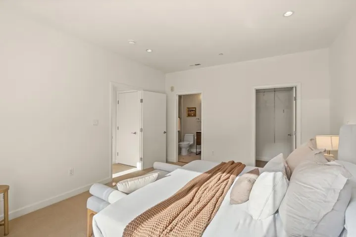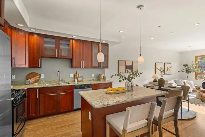 Welcome to 1 San Bruno Ave #N, a top-floor 1BR/1.5BA condo in the heart of Brisbane. This rare two-story unit features soaring ceilings, southwest-facing windows, and a private balcony that fills the home with natural light. The open main level includes a granite kitchen with ample cabinetry, dining area, and living room. Upstairs, the spacious bedroom offers a walk-in closet with custom organizers, ensuite bath with modern vanity, and direct access to a large private terrace with stunning mountain viewsperfect for enjoying peaceful mornings or colorful sunsets. Fresh paint, cleaned carpets, in-unit laundry, and central AC highlight the home, with recent upgrades including a new HVAC system, water heater, refrigerator, and light fixtures. This is one of only four southwest-facing two-story condos in the community, and the only one with central AC. Amenities include gated garage parking with storage, bike room, and a rooftop deck. Located next to Brisbane Community Park and walking distance to downtown shops, restaurants, library, pool, tennis courts, dog park, and nearby Quarry Road and Crocker Park trails, all with easy access to SF, SFO, Hwy 101, and 280.