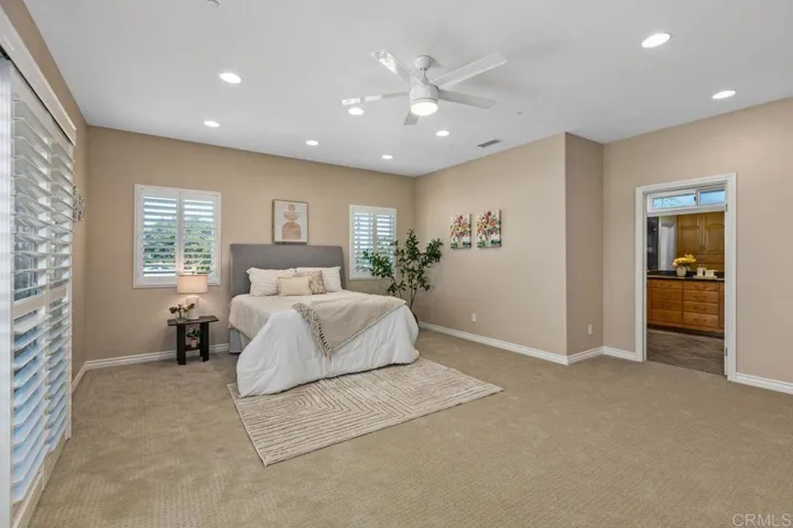 2,662 square feet, two story home with 4 bedrooms and 4- 1/2 bathrooms. One bedroom down and three bedrooms up. Two bathrooms downstairs, two bathrooms upstairs and a half bathroom in the garage. Hardwood flooring throughout the open first floor, with a spacious downstairs ensuite featuring a bath and walk-in closet. Fireplace in the living room. The primary bedroom features a second floor balcony facing the front of the house to offer sunsets and stunning westerly views all the way to Mt Soledad. Two additional bedrooms are upstairs The backyard has an amazing canyon view. There is also an attic room correlating to heating and cooling of the home. The 2-car garage with 4 open parking spaces in front of the garage gives plenty of space. The garage also is connected to a shower room and power-washer that is functional. The water heater is compact with a water softener. Down the street from popular spots such as UTC, Pacific Beach, La Jolla Cove! It is also close driving distance to the San Diego Airport!