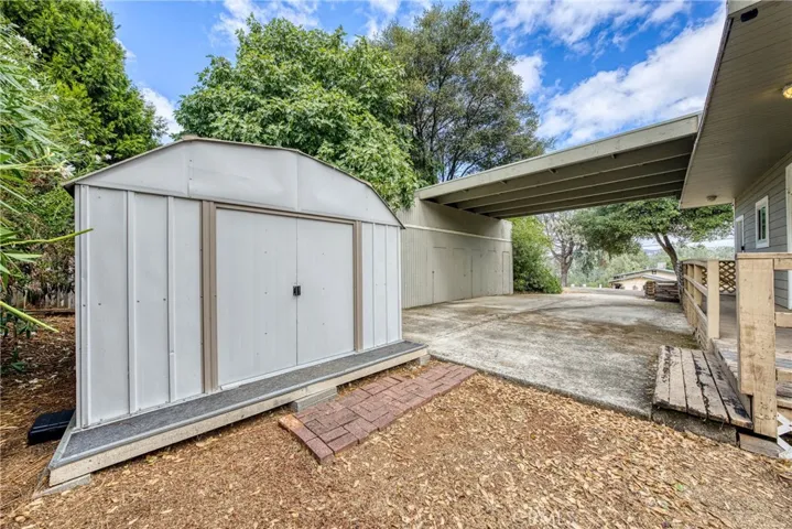 Exterior amenities include a long, flat driveway suitable for multiple cars, an attached carport with built-in storage, and a separate laundry room. The fenced front yard is shaded by beautiful oak trees and offers frequent nature sightings. Located in the Kelseyville Riviera, this home is centrally positioned in Lake County, California, providing access to schools, shopping, and the lake. Enjoy peaceful country living in a community just 2.5 hours from San Francisco and 2 hours from Sacramento.
