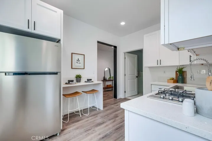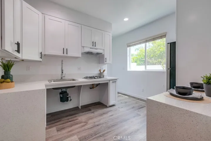 Completed in 2024…. READY FOR IMMEDIATE OCCUPANCY! Unit D is located on the 1st level, is ADA friendly, approximately 603 sq ft, 2 beds/1bath and dedicated 1-car assigned parking. This adorable unit is sleek, fitted with modern and contemporary finishes including quartz countertops, vinyl plank flooring, recessed lighting with smart switch outlets in bathrooms, mini-split system and energy-efficient double-pane windows. Unit is equipped with stainless steel kitchen appliances including its own in-unit washer and dryer. Water and trash will be included with the monthly lease. Tenants responsible for gas and electricity. Complex features include security gate entrance, dusk to dawn motion sensor lights and photocell exterior lighting. Prime location near the 605, 105, 91, and 5 freeway corridors, with close proximity to shopping, schools, public transportation, entertainment, and restaurants. Do not miss this opportunity and call today to schedule a private viewing!