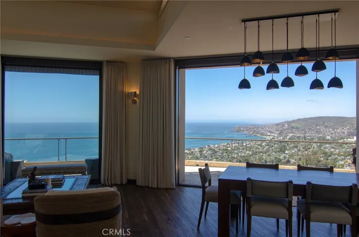 Perched in one of Laguna Beach’s most breathtaking settings, this four-bedroom, three-and-a-half-bath architecturally rich residence offers endless Pacific Ocean views, from the shimmering waters by day to the dazzling coastal lights by night. Designed to maximize the panoramic scenery, retractable glass doors seamlessly merge indoor and outdoor living, inviting in the ocean breeze and framing the stunning vistas.