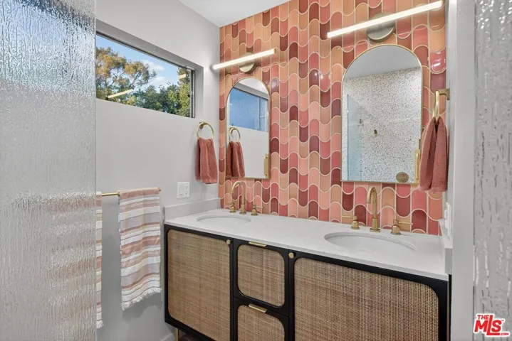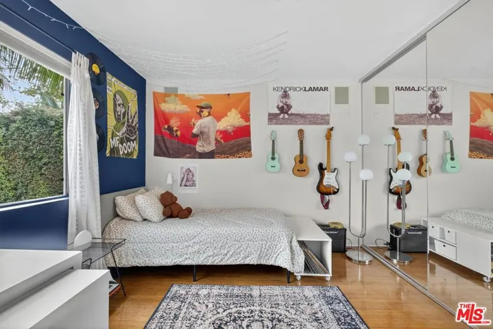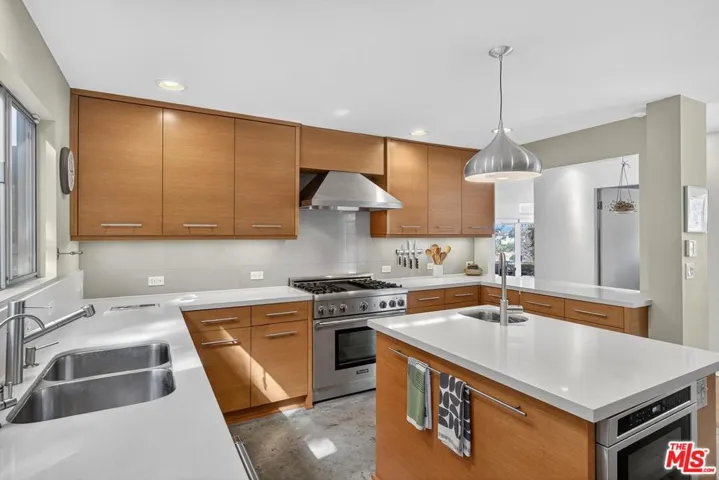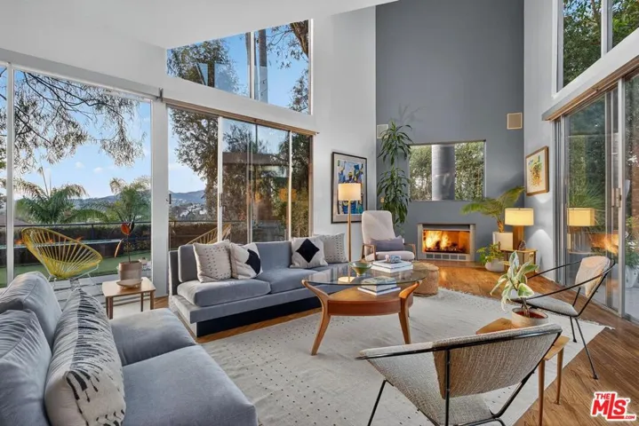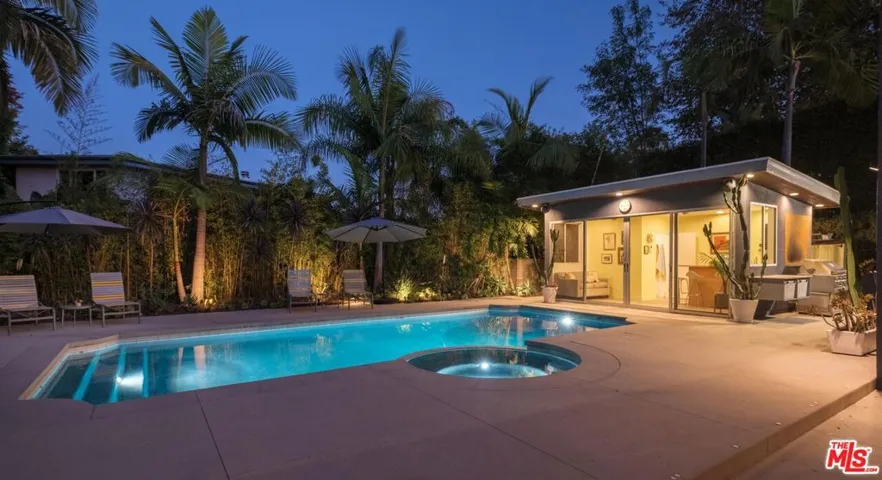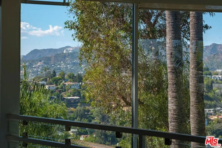 This architectural view home sits perched on a 12,371-square-foot promontory at the summit of Micheltorena, one of Silver Lake’s most coveted streets. Multicolor sunsets dissolve behind the Griffith Observatory and the Hollywood Sign. The airy interior is a masterful study in volume and light. A sophisticated material palette defines the space, from the Terrazzo in the baths to the hardwood floors throughout to the modern kitchen with Caesarstone counters and polished concrete floors. The upper level is dedicated to three bedrooms, including a dramatic primary suite suspended over the city with a fully modern bath including a steam shower; plus a laundry room, craft room, and a recently completely remodeled second bath. Adding a layer of authentic Los Angeles creativity, the property features a street-facing custom mural by celebrated local artist Eric Junker. The line between inside and out vanishes as sliding doors open to the courtyard, pool, spa, and private ADU/pool house. Multiple decks and patios extend the living space, offering a variety of settings for both cozy moments and dramatic entertaining. A summer kitchen, complete with a BBQ and sink area, a shaded craft area currently used as a pottery studio, and a refreshing outdoor shower further enhance the compound. This seamless integration creates a perfect oasis for family living or hosting on any scale. This is a singular opportunity to own a home that feels torn from the screen, a private sanctuary that is both a definitive piece of architecture and the ultimate Los Angeles experience.