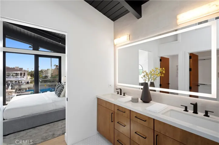 The lower floor consists of 3-bedroom, 2-baths, highlighted by 45 feet of waterfront patio, a brand-new dock, high-end finishes, and effortless indoor-outdoor flow. The primary suite opens directly to the patio with tranquil water views, creating a private retreat, while two sleek secondary bedrooms share a beautifully designed bath.