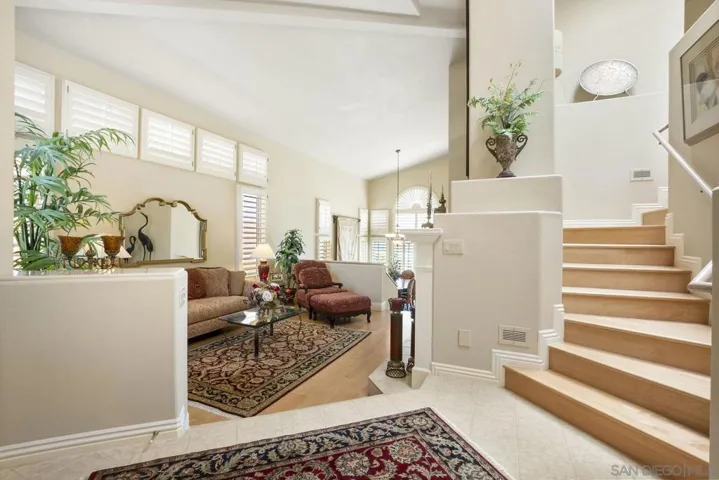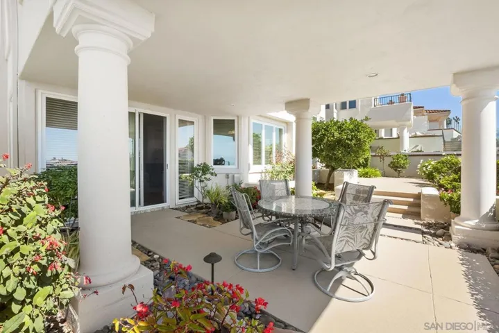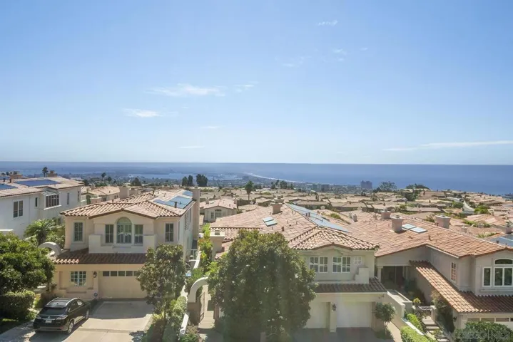 Value Range $3,500,000-$3,700,000. Nestled in the coveted gated enclave of Crystal Bay in La Jolla, this exquisite two-story residence blends timeless elegance with breathtaking coastal views. A grand double-door entry opens to soaring ceilings and abundant natural light, with tile at the entry transitioning to neutral-toned hardwood flooring. The formal living room offers a beautiful gas fireplace, hardwood flooring, and plantation shutters, while the dining room, accented by a chandelier, opens to a private patio with sweeping views from downtown to the Pacific Ocean along with refreshing coastal breezes. The kitchen showcases granite counters with a matching backsplash, light cabinetry, and a breakfast bar overlooking the family room below. A breakfast nook completes the space, and together these areas flow seamlessly into the family room, where a second fireplace, and sliding doors create an inviting setting for indoor-outdoor living. A first-floor bedroom and full bath, spacious laundry room, and three-car garage add to the appeal. Upstairs, the primary suite offers vaulted ceilings, a cozy fireplace, walk-in closet with organizers, and a private balcony with ocean views. The primary bath features dual sinks, granite counters, a soaking tub and walk-in shower. Outdoor living includes a two-level patio framed by Mediterranean-style pillars and a lime tree, with both shaded and open areas to enjoy coastline views. Residents enjoy exclusive access to a clubhouse, fitness center, pool, and pickleball courts, all within one of La Jolla’s most desirable gated communities.