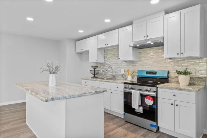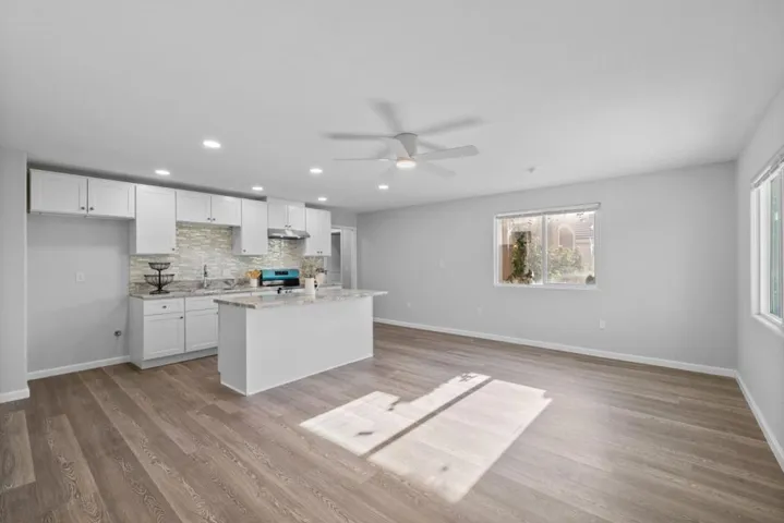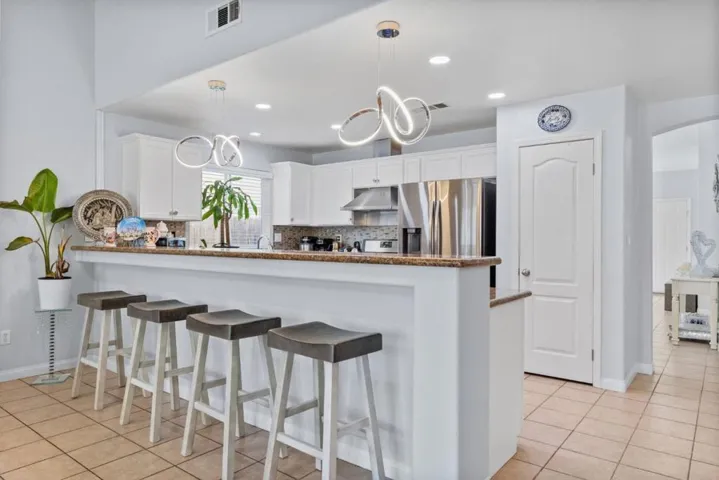 Upon entering this lovely 3 bedroom, 2 bath home, you’ll be welcomed by high ceilings and a spacious formal living room that seamlessly transitions into the dining area. This home boasts tile flooring throughout. The kitchen is equipped with a large breakfast bar offering ample seating space, complemented by granite countertops, a mosaic tile backsplash, and stunning white cabinetry for all your storage needs. The main living room is bright and airy, filled with natural light. The primary bedroom features an ensuite bathroom with dual sinks, a walk-in shower, and a separate soaking tub while the remaining bedrooms are all a great size for kids, guests, or office space. The backyard is an entertainer’s dream, with a large patio area and a luxurious pool for hosting year-round. This home also includes a 2 bedroom, 1 bath ADU unit that was converted from the garage that can be used as a home office, granny unit or income producing unit. Complete with a full kitchen, featuring gorgeous backsplash and countertops, a bathroom with a walk-in shower.