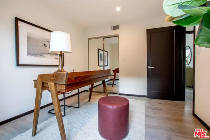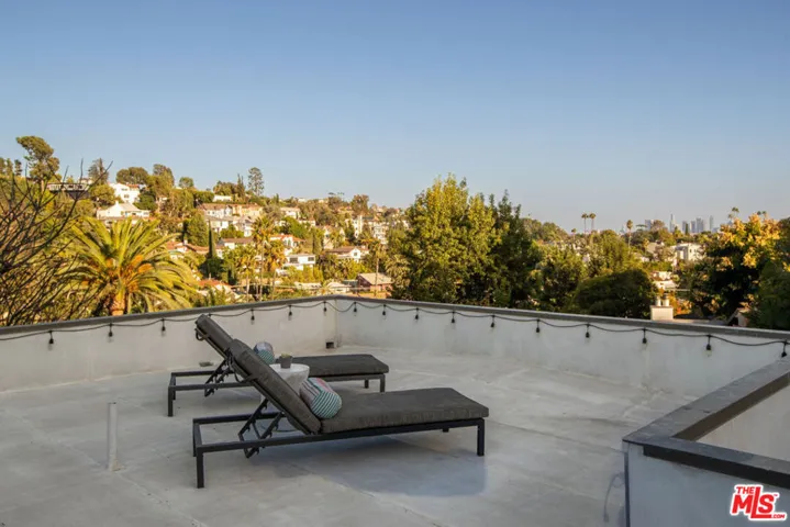 Discover a private canyon retreat that balances modern comfort with hillside character, just over half a mile up Beachwood Dr. Originally a 1925 cottage, this property was taken down to the studs and rebuilt into a light-filled modern 4-bedroom, 3-bath, 2-story home. Walls of picture windows surround the home, creating a treehouse-like atmosphere with natural light and 360 canyon views. Multiple outdoor spaces include a newly built 250 sq ft patio and a rooftop viewing deck showcasing stunning sunrises over downtown LA. Surrounding the patio, an enclosed organic vegetable garden and landscaped slope provide a lush green backdrop, creating a serene hideaway for outdoor dining and relaxation. Inside, soaring ceilings with exposed beams, wood floors, and a dramatic stacked-stone fireplace set the stage. The kitchen is equipped with Fisher & Paykel appliances including a dual refrigerator/freezer. A versatile bedroom with an adjoining bathroom, ideal for guests or a home office completes the main level. Upstairs, the primary suite and two additional bedrooms each have access to their own private balconies. The rare 2-car garage makes hillside living effortless. Whether entertaining, working from home, or unwinding above the city, this Beachwood Canyon residence offers the best of Hollywood Hills living.