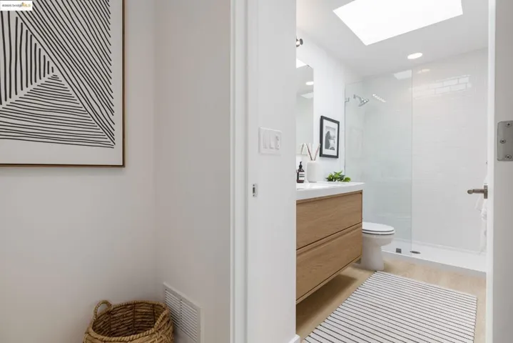 Brand new construction and Green Point Rated, this modern all electric single family home is stunning with three bedrooms, and two baths perfectly dispersed across three levels. SF views from the dining room and upper bedroom make this home shine. Designed by local noted architect Mike Pitler, this home features a sleek and stylish open concept design. Located in the Glenview neighborhood, near Dimond Park and trendy eateries, noted builder Workshop1 built this collection of homes from the ground up as a small modern enclave. The main living area is set perfectly on the second floor and combines the living, dining and kitchen area in one open concept space. The minimalist modern kitchen includes sleek oak and white cabinetry as well as a stainless steel suite of appliances including an electric convection stove. Moving up a level are two comfortable bedrooms and a full bath. On the ground floor, you will find the third bedroom with an additional bathroom, laundry closet and access to the private gated patio outdoor space. With solar panels, heat pump heating and air conditioning, dedicated parking in the parking courtyard , and many more amazing features this home is not to be missed. Views: Downtown