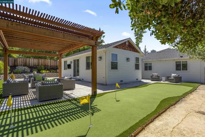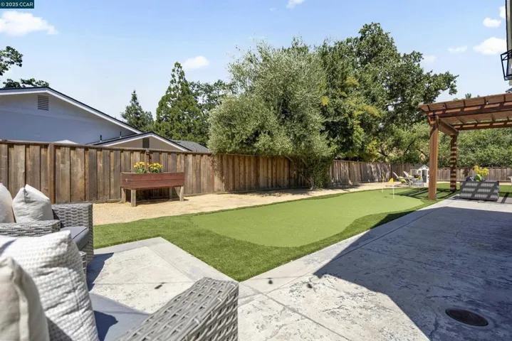 This single-story rancher is made for living, playing, and gathering. The expanded Great Room is filled with natural light and opens to a backyard designed for fun — sports court, putting green, wide turf lawn, and a shaded pergola for relaxing while the kids entertain themselves. With no rear neighbors and hillside views, it’s private and peaceful. The open kitchen is the heart of the home, with stainless Thermador appliances, a large island for casual meals, and a wine bar that makes hosting easy. Wide-plank hardwood floors, updated baths, and Milgard windows bring comfort and style throughout. Recent renovations plus the oversized Great Room add even more value: new roof, siding, porch, stone details, and landscaping ensure everything is move-in ready. Extra long driveway to park 4 cars. Located in a vibrant, revitalized neighborhood close to parks, trails, top schools, downtown and highly-rated Roundhill and Diablo Country Clubs. Priority access to Green Valley Pool for Cameo families. A home that’s ready to welcome yours. True sense of community. Amazing opportunity to live in a top Danville neighborhood. What could be better? Open Saturday and Sunday 2-4pm.