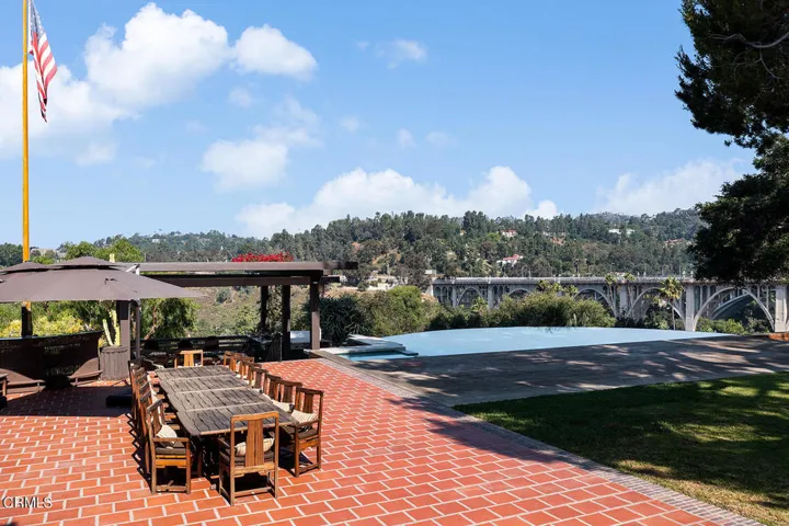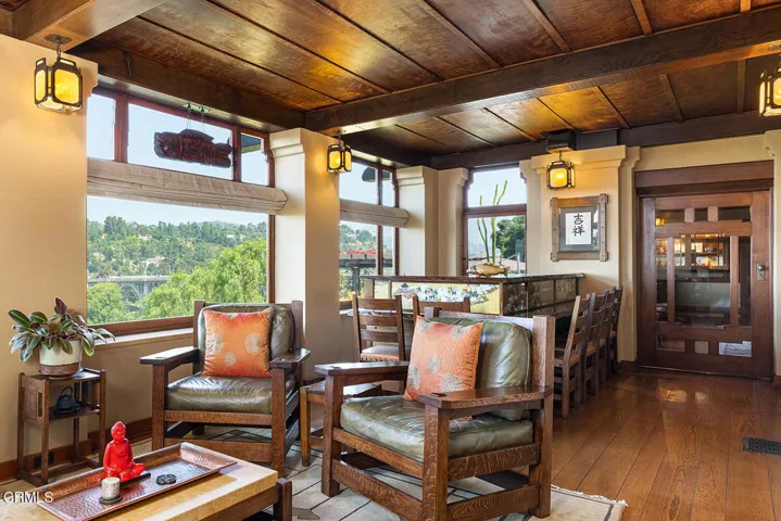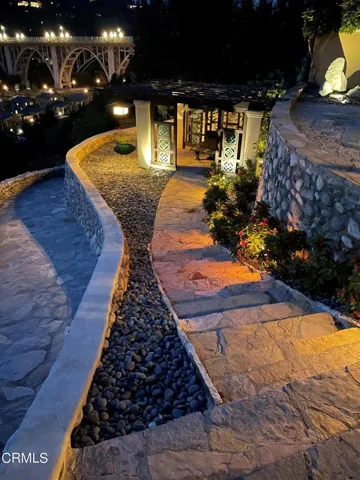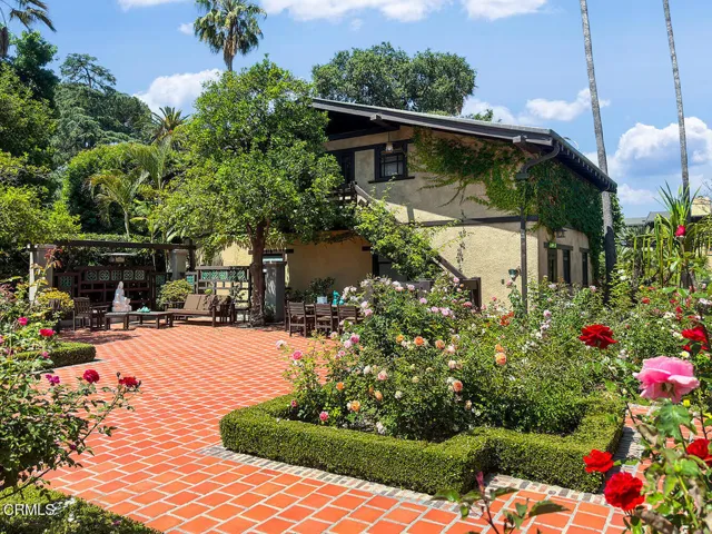 The Robinson House, masterfully crafted by architects Charles & Henry Greene in 1906, sits majestically on 3.36 sprawling acres overlooking the vast Arroyo Seco bluffs & the historic Colorado Bridge. Meticulously restored over 7 years by its third owners, this iconic mansion proudly showcases exquisite wood detail & artisan craftsmanship from a bygone era blending seamlessly with modern technology & amenities for today’s discerning lifestyle. A long gated driveway, past wondrous landscaped gardens, offers a first breathtaking view of this architectural treasure. A dramatic two-story entry foyer, clad in rare Port Orford cedar, welcomes guests, and features a cantilevered staircase & an original mahogany stained-glass chandelier. Spectacular & spacious public rooms, furnished in original Greene & Greene furniture or period reproductions, capture panoramic views of the Arroyo. A stunning LR with Batchelder-tile fireplace & a handsome library with built-in inglenook seating & fireplace, provide intimate spaces to host friends. Enjoy romantic sunset views as you dine at a custom sushi bar, or in the magnificent formal DR with a gorgeous stained-glass chandelier. French doors lead out to a glorious terrace, an infinity-edged pool perched dramatically on the Arroyo banks with swim-up bar, an outdoor kitchen & numerous mesmerizing garden destinations. The newly-remodeled gourmet kitchen is a chef’s dream with top-of-the-line appliances, a 14′ center island & a built-in breakfast area with spectacular vistas. Four generous BR suites with custom closets & panoramic views, and a laundry room, grace the second floor. A back staircase continues to a darling guest suite with sitting room on the third level. A 2265sf basement houses a media room, wine cellar, billiard room, card room & storage rooms. Bask in the CA sun and enjoy the many enchanting garden rooms after an invigorating swim on the Arroyo’s edge or a pickle-ball match. Stroll the leafy paths by the stream & wisteria-covered bridge; savor delicious pizza hot from the oven; relax by the romantic lily pond; enjoy delicious fruit from the orchard; be intoxicated by the fragrant rose garden; mediate in the Zen Japanese garden; camp out in a teepee under the night stars; stroll to Old Town for dinner & shopping; or catch an easy freeway to DTLA or the West side… the lifestyle possibilities are truly endless when you seize this magical once-in-a-lifetime opportunity to experience Pasadena’s ultimate Paradise!