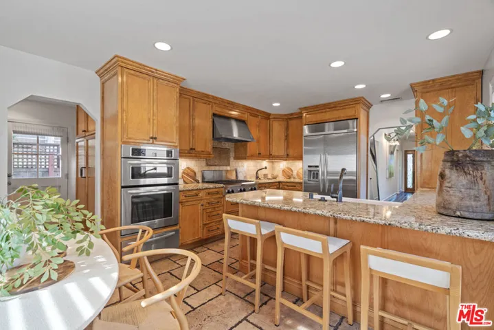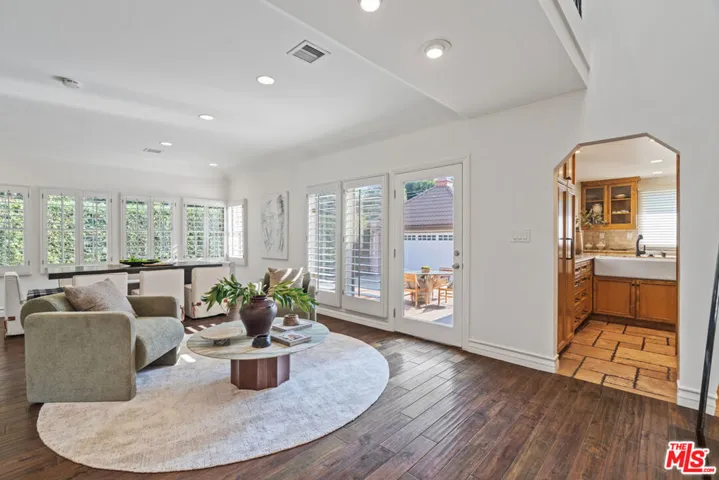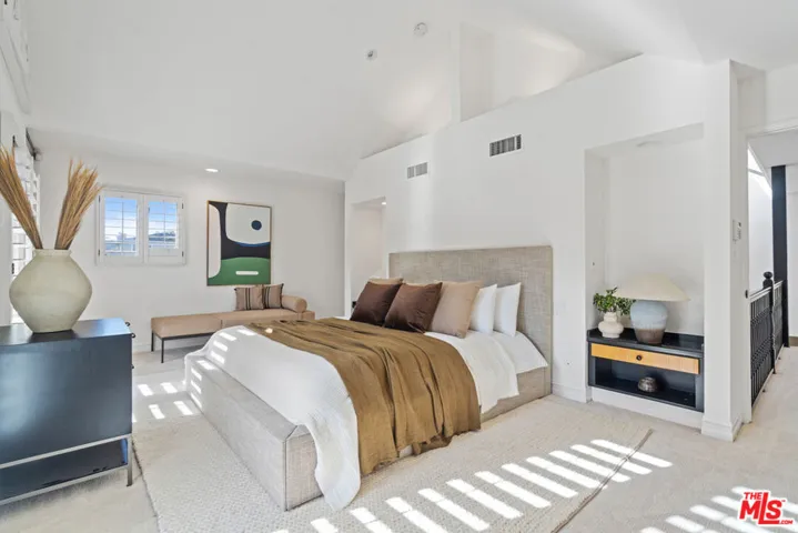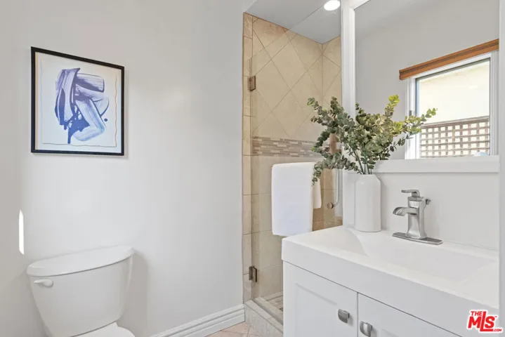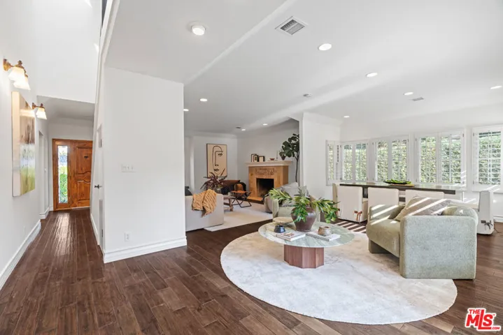 New Price! Stunning Brentwood home sits on the border of Santa Monica on a sprawling 8,984 sq ft lot with passthrough and double garages on an extra-long driveway. The bright living room opens to a large grassy backyard and patio. Three en-suite bedrooms are located on the main level, while a private upstairs primary retreat features soaring A-frame ceilings, abundant natural light, a spacious balcony, dual walk-in closets, and a full bath. Additional highlights include skylights, built-ins, French doors, and a flexible second garage. An exceptional location close to Brentwood Village and the best of the Westside.