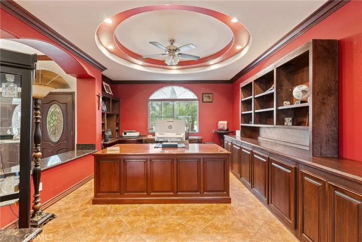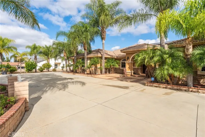 Welcome to Your Dream Estate in the Heart of Romoland! Situated on just over an acre of land in a highly desirable neighborhood, this exceptional property offers the perfect blend of elegance, functionality, and future potential. From the moment you arrive, you’ll be captivated by the stunning stoned gated exterior and the impressive grand entrance that sets the tone for what lies beyond. Step inside and be greeted by a spacious, light-filled foyer that opens into an expansive and thoughtfully designed floor plan. The formal dining room provides ample space for large gatherings, making it ideal for entertaining family and friends. Adjacent to the dining area is the open-concept kitchen—a true chef’s dream—fully equipped with a stove, oven, dishwasher, and refrigerator. This culinary space seamlessly flows into the living and dining areas, ensuring no moment is missed while cooking or entertaining. Off the dining area, you’ll find a beautifully crafted custom office featuring rich wood built-ins—perfect for working from home without sacrificing a bedroom. For added flexibility, this space can easily be converted into a 6th bedroom, offering adaptability to suit your family’s needs. The primary suite is a serene retreat, located down the hall for maximum privacy and featuring picturesque views of the backyard. The en suite bathroom is your personal spa oasis, complete with a soaking tub, dual vanities, a walk-in shower, and two oversized walk-in closets. The additional bedrooms are all generously sized and thoughtfully positioned to accommodate a growing family or guests comfortably. A dedicated laundry area is conveniently located next to the garage, outfitted with hookups and plenty of space for organization. Outside, the possibilities are truly endless. Whether you envision building an ADU (Accessory Dwelling Unit), creating a horse ranch, or simply enjoying the wide-open space, this property delivers. Mature fruit trees dot the landscape, offering seasonal harvests and a sense of tranquility. With over an acre to work with, there’s plenty of room for animals, gardens, recreation, or future development. This is a rare opportunity to own a unique parcel in one of Romoland most sought-after areas. Whether you’re a large family needing room to grow, an equestrian enthusiast, or an investor looking for land with future building potential, this property offers it all.