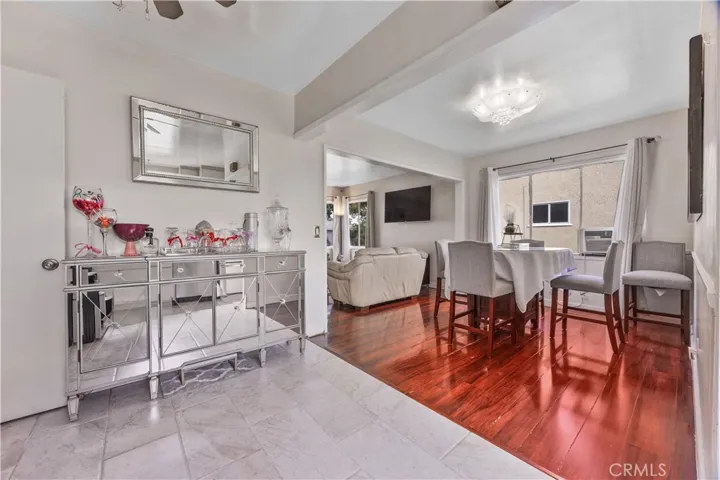 Step into this gorgeous resort-like pool home in one of the quiet cul-de-sacs of Downey, that is perfect for relaxing and entertaining. From the moment you arrive you will be welcomed by a trio of palm trees and newly installed cement pavers in the walkway/driveway/ backyard, and travertine stone walls that frame the house both front and back. Inside, the home offers a comfortable layout of 3 bedrooms which can be closed off from rest of home in case the baby is asleep or your sleeptime varies from other family members. Romantic chandeliers, ceiling fans, and plenty of natural light create a warm and inviting atmosphere. The restrooms have been updated with carrera marble tile walls, vanity and flooring giving the home an elevated spa-like feel. The suite of kitchen appliances all match. The backyard is truly a retreat, featuring a sparkling heated pool, new modern tiles and pebble-tech flooring. On one side you can calmly lounge with friends and do aqua-yoga or play volleyball and on the other you can show off your skills and tricks as you jump into the prestine water from atop the diving board and into this 9 ft deep refreshing attraction. Whether it’s barbeques, pool parties or simply enjoying a quiet evening outdoor poolside under the stars by a gas-lit fire, this backyard has it all. Nestled in North Downey, near Wilderness Park, Costco, Smart & Final, Target, Honda World and quick access to the 5 and 605 fwy, this home blends charm, luxury and convenience into one. Don’t miss a chance to make this gem of a property your own.