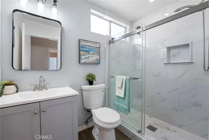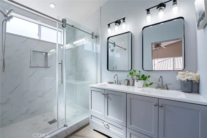 This two-story home is located in the Southridge neighborhood, close to schools and the Southridge Shopping Center. The home features an open floor plan with 5 bedrooms and 3.5 bathrooms. Laminate flooring and tile in the bathrooms are featured throughout. The living area, with its cozy fireplace and cathedral ceilings, is the perfect place to relax on cooler days. The newly renovated kitchen, with granite countertops, quality cabinets and a breakfast nook, opens to the family area and backyard, making it ideal for family gatherings and entertaining guests. Downstairs, there’s a bedroom with its own full bathroom, as well as a half-bathroom for guests. Upstairs, the master bathroom has been completely renovated with double vanities, high-quality cabinetry, and a walk-in shower. Two spacious secondary bedrooms connect to a newly renovated bathroom with a shower. Just replaced the water heater. This home is perfect for a large family or multi-generational living. The roof is newer. The backyard is surrounded by concrete slabs and has direct access to the double garage. The home is close to schools, shopping, and parks, and offers easy access to the 60, 15, and 10 freeways. Don’t miss this home!
