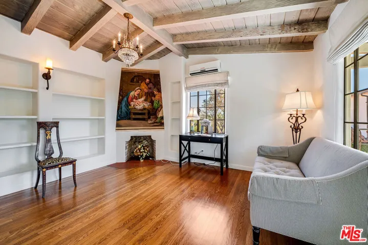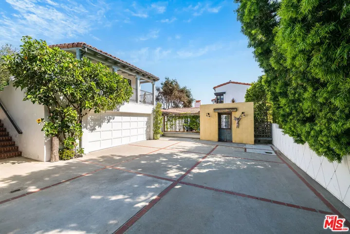 Chautauqua-on-the-rim. Unique and special Spanish style home. Once through the gates and in the courtyard entry you are immediately transported emotionally to a different place… Mexico, Spain or Tulum perhaps. Warm and welcoming, gorgeous, restored and remodeled. Cathedral beamed ceilings and French doors set the stage for that perfect indoor/outdoor flow from the front courtyard to the back patios. Romantic primary suite with an office, dressing area and the ideal upstairs patio with views across Rivas Canyon to the ocean. 2 beds down with a beautiful wood paneled family room. Newly remodeled chefs kitchen, fabulous flow for entertaining, very flexible floor plan.. Light, bright walls for artwork, all of the windows look out on incredible vistas. Private, special, all of this and a guest house. This house is resilient and withstood everything nature confronted it with and is a testament to the strength and the longevity of a true Spanish home built in 1930.