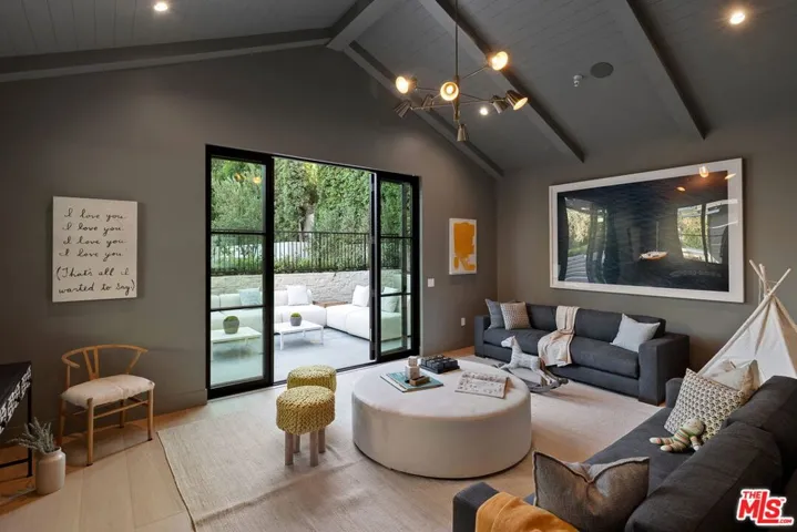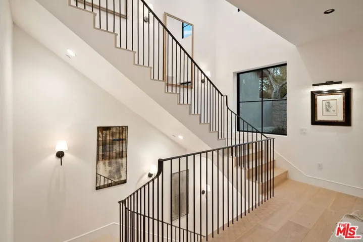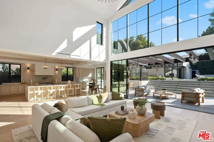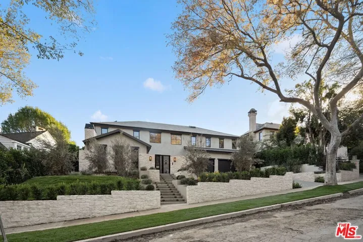Exceptional custom residence blending contemporary sophistication with timeless elegance. Interiors feature wide-plank oak floors, natural wood elements, and a refined mix of slab finishes and custom cabinetry. The chef’s kitchen is appointed with Sub-Zero refrigeration, Bluestar range, and a Miele espresso maker, opening to a soaring family room with double-height ceilings and walls of glass. Resort-style outdoor living includes a pool, ADU, built-in BBQ and beverage center, fire pit beneath the pergola, and landscaped grounds with a private entry water feature. Additional highlights: state-of-the-art theater, finished basement with gym, temperature-controlled wine cellar, home automation, elevator to all levels, two laundry rooms, a second Miele espresso maker in the primary suite, and three-car garage. A rare opportunity to own a thoughtfully designed estate offering luxury, comfort, and style in one of Los Angeles’ most coveted neighborhoods.