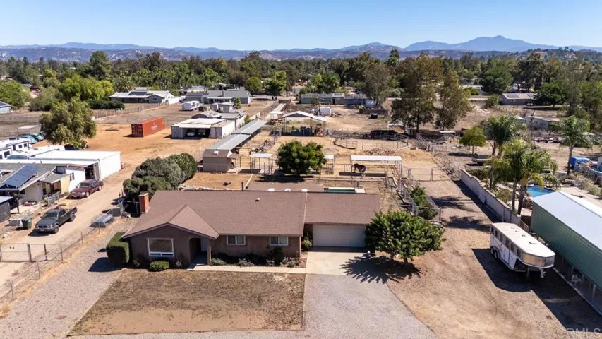 Welcome to this beautifully upgraded property, thoughtfully designed for comfortable living and equestrian, or animal use. This ranch-style setting home combines modern amenities, energy efficiency, and extensive outdoor features. Inside, the home boasts custom-built bathroom cabinetry with maximum storage, and elegant travertine countertops. The kitchen is enhanced with granite tile counters, a brand-new refrigerator, microwave, and a spacious pantry complete with ShelfGenie pull-out drawers and organizers. Dual-paned windows, a whole house vacuum system, a newer water heater, a new heater, and a Mirantec garage door opener with a newer garage door ensure both comfort and efficiency. Energy features include 26 solar panels, 2 Tesla Power walls, a Tesla EV charger, and a new Lopi wood-burning stove, offering sustainable living without compromise. A home security system also adds peace of mind. Outdoors, the property is fully fenced and cross-fenced with a powered front gate. Equestrian enthusiasts will love the impressive 108-ft steel beam custom horse structure, 6 oversized 24×24 corrals, an additional 12×24, a 54-ft round pen for exercising, 2 wash racks/grooming stalls, and a hay barn with electricity. A 12×10 wood shed/tack room adds convenience. The backyard is perfect for entertaining or relaxing, featuring a covered patio, a sparkling in ground-ground pool with a new upgraded variable-speed pump, and raised garden beds for your seasonal plantings. Mature fruit trees—olive, grapefruit, lemon, tangerine, lime, avocado—and blackberry vines provide an abundance of fresh produce right at home. There is all new insulation in the attic, along with an attic fan to help keep the house cool. There is plumbing that extends throughout the property, making every corner functional. This unique property offers a rare combination of modern upgrades, energy independence, and equestrian amenities, creating a private retreat with everything you need.