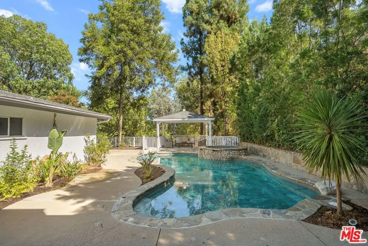 OFFERS DUE 10/16 BY 5PM. Nestled on a nearly half-acre lot on a tranquil, tree-lined street, this exquisite storybook home masterfully blends timeless charm with contemporary elegance. The property captivates with exceptional curb appeal with a graceful half-circle driveway, lush landscaping, and a remarkably large grassy lawn. Step inside to the home with five spacious bedrooms, four bathrooms, and discover the grand living room highlighted by elegant white oak hardwood flooring and three stunning French doors that bathe the space in natural light while seamlessly connecting to the outdoors. The expansive dining room, adorned with a cozy nook and striking fireplace, sets the stage for unforgettable gatherings. The chef’s kitchen is a masterpiece, boasting abundant cabinetry, generous countertops, a charming breakfast nook, and top-of-the-line stainless steel appliances. The primary suite is a serene retreat, complete with soaring vaulted ceilings, a private balcony, a spacious walk-in closet with custom cabinetry, and a spa-inspired en suite bathroom featuring a rainfall shower, luxurious Jacuzzi tub, and dual vanity. The backyard is a true haven, showcasing a sparkling oversized pool, a cascading waterfall Jacuzzi, an inviting cabana, and a fully equipped outdoor kitchen with a grill and sink ideal for al fresco dining and entertaining. The sprawling lawn offers endless possibilities for recreation and leisure. Perfectly situated near vibrant dining, premier shopping, and amenities such as The Village, Cedars-Sinai, Whole Foods, and Equinox, with easy access to the 101 Freeway, this home offers an unparalleled blend of tranquility, luxury, and convenience. Prepare to fall in love with this enchanting residence.