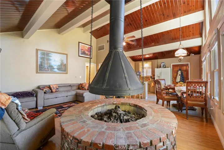 This well-kept 2-bedroom, 1-bath cabin offers a perfect escape into the San Bernardino mountains. Built in 1978 and full of character, the home features vaulted high ceilings, a unique indoor fire pit, and a spacious open living area that creates a warm, inviting atmosphere year-round.