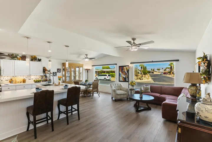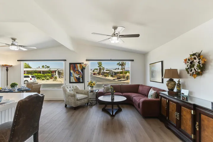 Welcome to Palm Desert Greens, one of Palm Desert premiere 55+ active adult communities. This home has a 433A certification which makes it eligible for financing. This home has been recently remodeled & move in ready. The luxury vinyl plank flooring runs seamlessly throughout the entire home. The kitchen features Quartz counter tops, decorative backsplash, pantry, newer appliances, cabinetry, recessed lighting & designer pendant lighting over the large center island. The dining area allows for entertaining guests along with 2 living areas & a quaint office nook. The primary bedroom features a large walk-in closet & an en-suite bathroom with a step in shower, new vanity & lighting. The secured backyard features a large covered patio, new vinyl fencing for privacy & multiple areas for relaxing under the stars, barbequing & multiple new plantings. Per the seller, other notable updates include new doors, windows, copper plumbing in the bathrooms, sheetrock, interior & exterior paint. Palm Desert Greens is conveniently located near shopping, dining, casinos & medical facilities. This home is perfect as a full time residence or as an investment property. Golf is included for owners in the HOA of $400 per month.