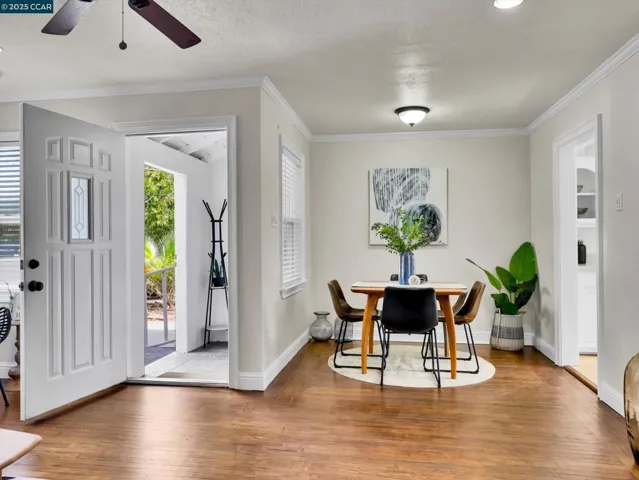 The cutest thing…in Concord! updated Mid-century, one-story house featuring 3 bedrooms, 1 bathroom, 1-car garage at Crawford Village subdivision, conveniently and centrally located from only 2 blocks away from Concord BART station, ideal for commuters. Enclosed entry porch with a “mudroom”. New 30 year-roof system, original hardwood floors throughout, double pane windows. Updated kitchen with solid quartz counter tops. Upgraded bathroom. Tankless, energy-efficient water heater. Enjoy the installed fast fiber optic internet. Relax in the large, low-maintenance private and soothing backyard’s serene setting, showcasing a custom-made stamped concrete patio. Superb location, within walking distance to Concord Downtown, business district, shopping, restaurants, parks, in close proximity to 242, 680 & Hwy 4 freeways, public transportation and an array of different community services. Virtual tour at https://my.matterport.com/show/?m=n11LShcbL5Z