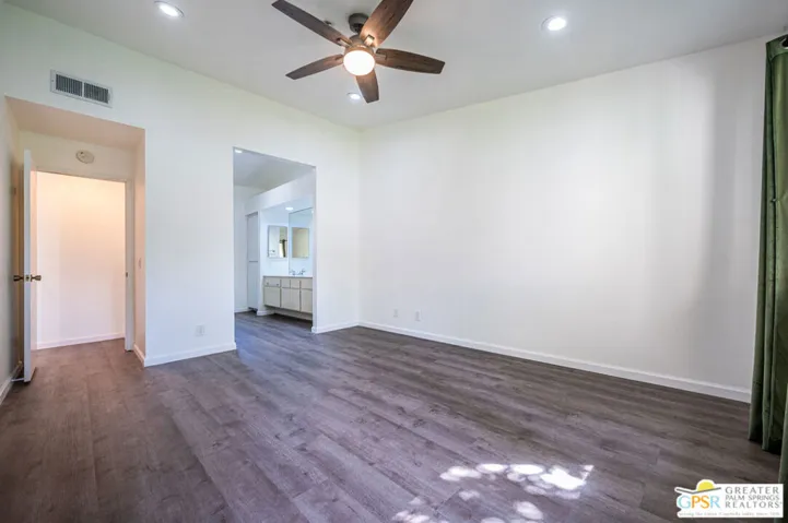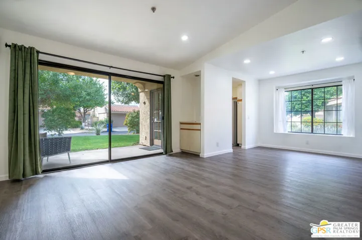 Experience resort-style living at its finest in this move-in-ready, rare single-story condo located within the coveted Cathedral Canyon Country Club. Perfectly situated between Palm Springs and Palm Desert, this beautifully updated 2-bedroom, 2-bath residence offers the ultimate blend of comfort, sophistication, and desert charm. Step inside to discover a freshly renovated interior featuring smooth, popcorn-free ceilings, new recessed lighting, modern ceiling fans, all-new outlets, and stylish new flooring and baseboards. The kitchen gleams with brand-new stainless steel appliances, making it a joy for everyday living or entertaining. Step outside to your private patio and take in breathtaking mountain views – the perfect backdrop for morning coffee, al fresco dining, or sunset cocktails. Residents of this beautifully maintained community enjoy access to sparkling pools and spas, tennis courts, an 18-hole golf course and clubhouse all set against the dramatic San Jacinto Mountains. Enjoy peace of mind with an HOA that covers landscaping, exterior maintenance, roof, pools/spas, and security gates. The community is pet-friendly, allowing up to three pets per household. Schedule your private showing today and fall in love the moment you arrive.