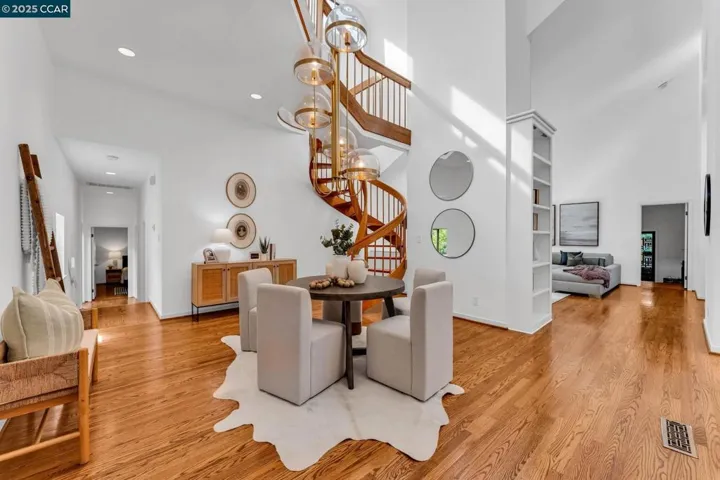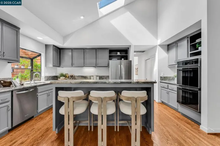 Nestled in a tranquil enclave of upscale, modern homes, this property exudes the luxurious ambience of a high-end resort, brimming with sophistication & style! Stunning features throughout include dramatic sun-filled rooms, soaring ceilings, a sharp and updated chef’s kitchen as well as inviting indoor and outdoor entertaining spaces. Lush & serene yard with a backdrop of mature trees, patios & decks creating an entertainer’s paradise & family retreat! Updated kitchen boasts slab granite counters, center island w/cooktop, gleaming stainless steel appliances, and eat-in informal dining and sitting area which leads out to entertaining decks! Formal living room with rich hardwoods, vaulted ceilings, plantation shutters and wood burning fireplace with a stylish gray tile hearth/surround. Striking dining room boasting an impressive custom made glass light fixture, recessed lighting and a wet bar with freshly painted cabinetry & slab granite counters. A custom wood spiral staircase leads to the sunny office loft with built-in shelving. Bonus storage loft area (with winch) in garage. High-end resort feel: the primary suite boasts a fireplace, vaulted ceilings, serene balcony, split bath layout. Close to downtown amenities, top schools, easy commuting, Tice Valley restaurants & shopping!
