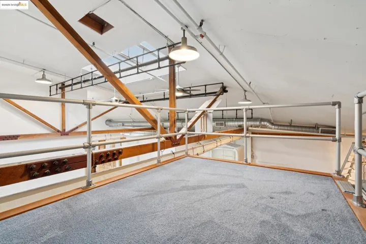 Extraordinary live-work loft featuring over 2,400 sq ft of creative space. The floor plan is intelligently divided into two distinct areas: ~1/3 is living (kitchen, dining/ living, bath and loft/bedroom) and ~2/3 is an open workspace. Workspace can be divided easily into more than one workspace if desired. Amenities include a photographic darkroom, sound-absorbing work pod, and stand-alone office with usable “roof top”. High ceilings dotted with skylights provide gorgeous natural light from above, and exposed vents reinforce a modern-industrial feel. Rare feature: working conveyor belt (shared with one neighbor) can transport items from ground level directly to the loft. Free community laundry, plus hook ups in unit. Easy access to 880 fwy, Lake Merritt or Jack London Square, and less than 1 mile to Brooklyn Basin / waterfront. For makers, people running a home office, or folks who simply need space to think differently – this live-work loft can be considered their personal headquarters.