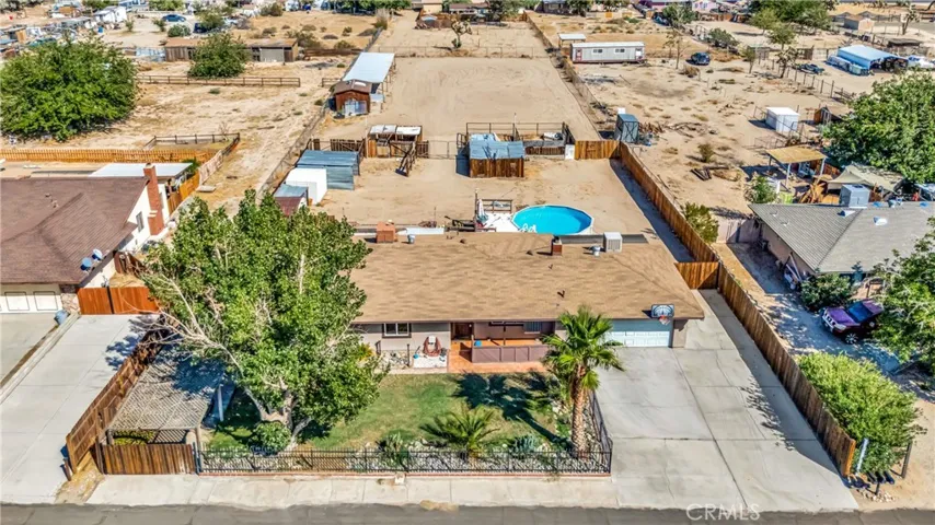 Pride of ownership is apparent as this lovely single story home is being sold by its original owner and offering over 1,100 sq. ft. of comfortable living space!! Inside you’ll find 3 spacious bedrooms with the master having its own en suite, 2 full baths, a beautifully updated kitchen with pretty gray cabinetry, granite counters with tile accents, upgraded stainless steel appliances, and a charming dining room area!! Newer dual pane windows throughout with unique ceramic tile floors and wood flooring in one of the bedrooms complemented by gorgeous new fresh interior and exterior paint!! You are sure to love the real brick wood burning fireplace too for those cool winter evenings!! There is also central air/central heating along with a window evaporative cooler to save money in the summer!! The property sits on nearly 30,000 sq. ft. of flat, usable land zoned for horses — tremendous curb appeal with a fully fenced wrought iron privacy fence with gate in the front yard and courtyard area along with fully fenced chain link and cross-fencing in the backyard!! The front yard boasts mature landscaping, grassy areas, and palms, while the backyard features a covered patio, storage sheds, and plenty of space for horses!! An above-ground pool with pump and filter provides the perfect spot to relax, while the 2-car garage with laundry area adds everyday convenience!! This home truly offers it all — comfort, charm, and endless possibilities on a rare oversized lot!! Hurry to go see this special home today before it is sold!!