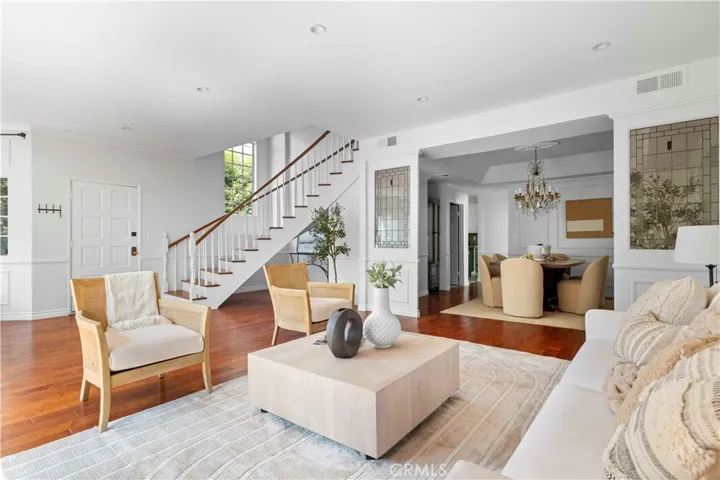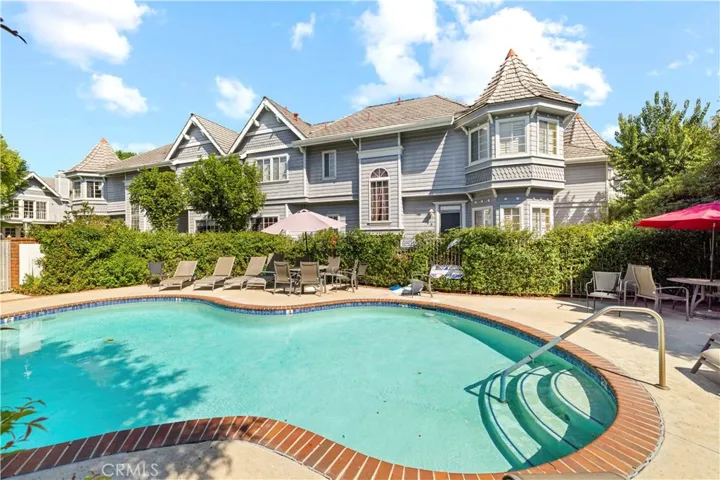 Welcome to this truly special and architecturally unique 4-bedroom, 2.5-bath townhome offering 2,356 sq ft of thoughtfully designed living space in the beautifully landscaped, gated enclave of Windemere—a hidden gem with only 24 residences. This light-filled home is full of character and charm, from its elegant turrets and curved staircase to classic picture moldings, chair rails, and detailed exterior finishes that set it apart from anything else in L.A.