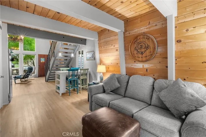 Inside, the home has been thoughtfully updated over recent years with new flooring throughout, fresh interior and exterior paint, and remodeled kitchen and bathroom spaces. The layout features two comfortable living areas, enhanced by a newer electric fireplace—the perfect cozy touch for relaxing evenings. Dramatic floor-to-ceiling windows in the main living room fill the space with natural light and frame the surrounding pine trees, bringing the outdoors in. A dedicated wine room adds a touch of sophistication and is ready for entertaining or personal enjoyment.