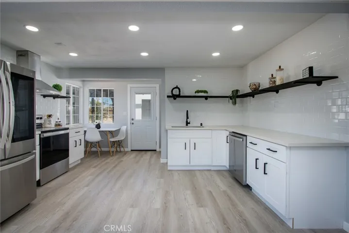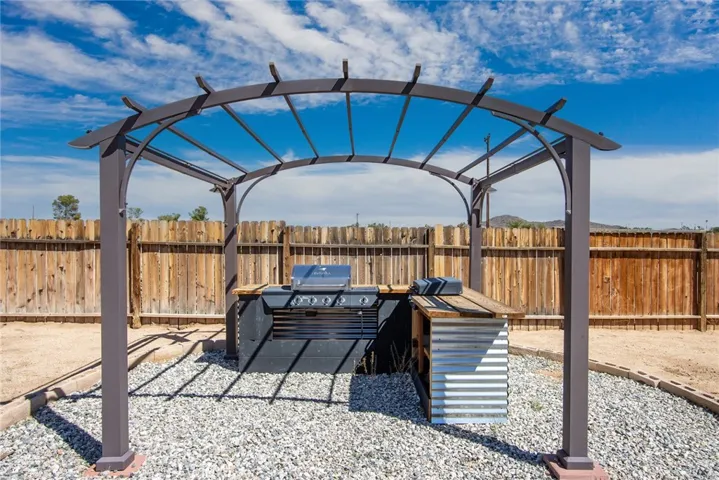 Spacious Newly Remodeled and Updated 5-Bedroom, 3-Bathroom home, including the detached, private Casita. Fully-paid solar. Work completed with Permits. Expansive 2.5-Acre parcel, bordered on the northern boundary by government-owned land providing a wilderness/privacy barrier. Views to the south of the ridgelines of Joshua Tree National Park – only a short drive away, or hike out the front door into the desert. Home has never been lived in since complete remodel, providing buyer a clean slate. Many possibilities including purchasing as a primary residence with the option to rent out the casita extra rooms to help pay the mortgage, or a long-term investment rental, or a private vacation getaway supplemented by Airbnb rentals. Includes a unfinished trailer that could act as an extra room. New ductless mini-split AC/Heaters throughout. Custom installed floor-to-ceiling tile in each bathroom. New flooring. New cabinetry and counters throughout. Clean, well-lighted integrated indoor/outdoor living, with private porch off the primary bedroom suite. Rural location, yet only minutes to downtown for dining and shopping. Perfect for a large, extended family or group purchase with friends or family to secure your desert dream.