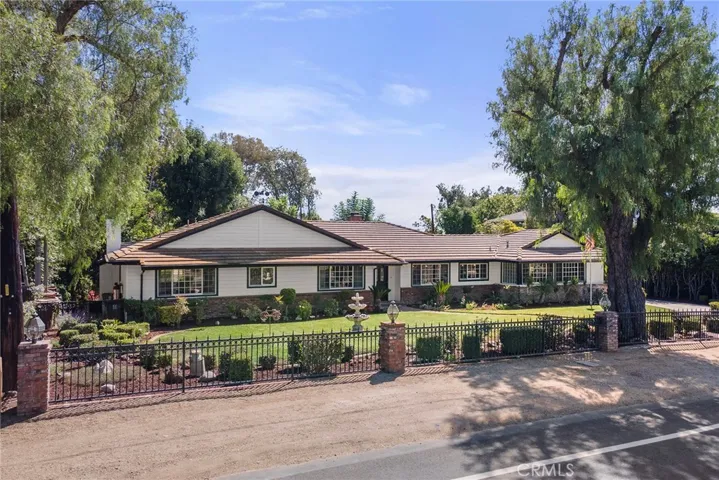 One-of-a-kind SINGLE STORY home, nestled on the prestigious Valencia Mesa Drive on appx. 21,500+ sf lot! Delightful curb appeal boasting private GATE and beautifully landscaped yard with romantic water fountains and lush foliage. This charming home showcases the timelessness of classic design elevated w/ modern convenience. Enter through a custom Dutch door leading into a spacious kitchen with high-end Wolf, Sub-Zero & Bosch appliances, stylish kitchen island and extra large counter space perfect for hosting. Spacious dining room with beautiful wood beamed ceiling, intimate fireplace, and large windows and slider providing light & bright ambiance. Great room with handsome brick wall and direct access to an Entertainer’s backyard with expansive patio perfect for outdoor BBQ to spend balmy evenings dining al fresco, sparkling pool with waterfall and poolside lounging with cozy firepit, lush greenery and fairytale landscaping with walking path winding through multiple fruit bearing trees and tiered planters, personal greenhouse, chicken coop, a tortoise house with slide and a storage barn, a peaceful retreat that offers something for everyone while preserving a peace & privacy ambiance. All bedrooms provide ample space including a primary bedroom with custom built-in cabinets, dropdown Murphy Bed, walk-in closet and a stylish tub providing an ultimate relaxation with artistic detail. This special home is equipped with PAID Solar System, water filtration system, new water softener, fresh exterior Tex-Cote paint, and sweeping driveway with potential RV parking. A remarkable opportunity boasting every advantage of its prime location, proudly located in award winning Fullerton district, just moments away from the popular Laguna Lake and Fullerton Loop (hiking, biking, equestrian) trails, golf courses, St. Jude hospital and endless shopping/dinning options Fullerton has to offer. A true rare gem tucked away in a serene location perfect for entertaining while preserving an atmosphere of quiet intimacy. This one of a kind property on this well-desired street is a must see!
