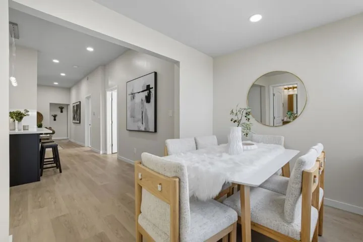 Welcome to 2931 San Bruno Avenue, a splendid San Francisco home where elegance meets functionality. This residence offers four spacious bedrooms and three and a half bathrooms, designed to cater to your every need. On the main level, you’ll find a beautifully open floor plan that seamlessly connects the living, dining, and kitchen areas, perfect for both day-to-day living and entertaining. The high ceilings and recessed lighting create an airy and inviting atmosphere, while the kitchen boasts abundant cabinet space for all your culinary essentials. The primary bedroom, also located on the main level, provides a private retreat featuring ample space and comfort. Step outside to the deck, which guides you to a low-maintenance backyard, an ideal space for relaxation or hosting friends. The deck also leads to a versatile bonus room, offering endless possibilities for use as a home office, gym, or creative studio. The downstairs area is equally impressive, featuring a separate living room and a convenient kitchenette. This setup is perfect for extended family, guests, or even as an in-law suite, providing privacy and additional living space. Experience the perfect blend of style and practicality in this thoughtfully designed home, nestled in the vibrant heart of San Francisco.