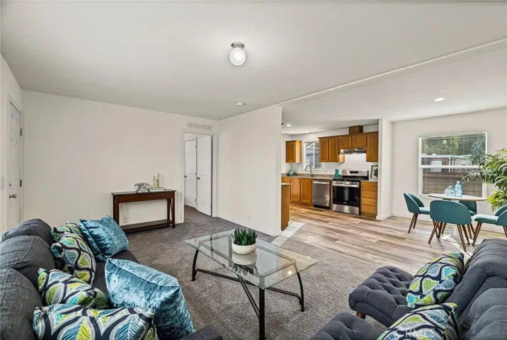 Come home to Chico Mobile Country Club! This turnkey home features a split floorplan, fresh carpet, luxury vinyl plank flooring, separate laundry room, a bright kitchen with stainless appliances, and a carport as well as an additional driveway for parking. CMCC is a wonderful 55+ community that offers amenities for everyone from a sparkling pool & spa, fitness center, beauty salon, game room, car wash station, RV parking and more. Do not miss the chance to own this beautiful new home moments from downtown Chico